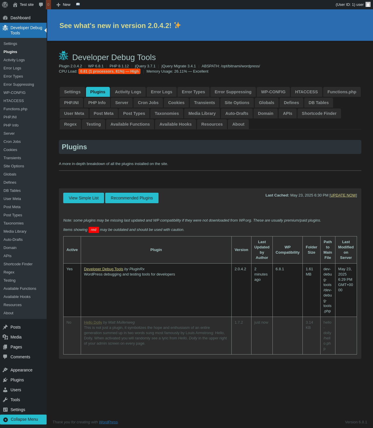 | URL | /wp-admin/admin.php?page=dev-debug-tools&tab=plugins |