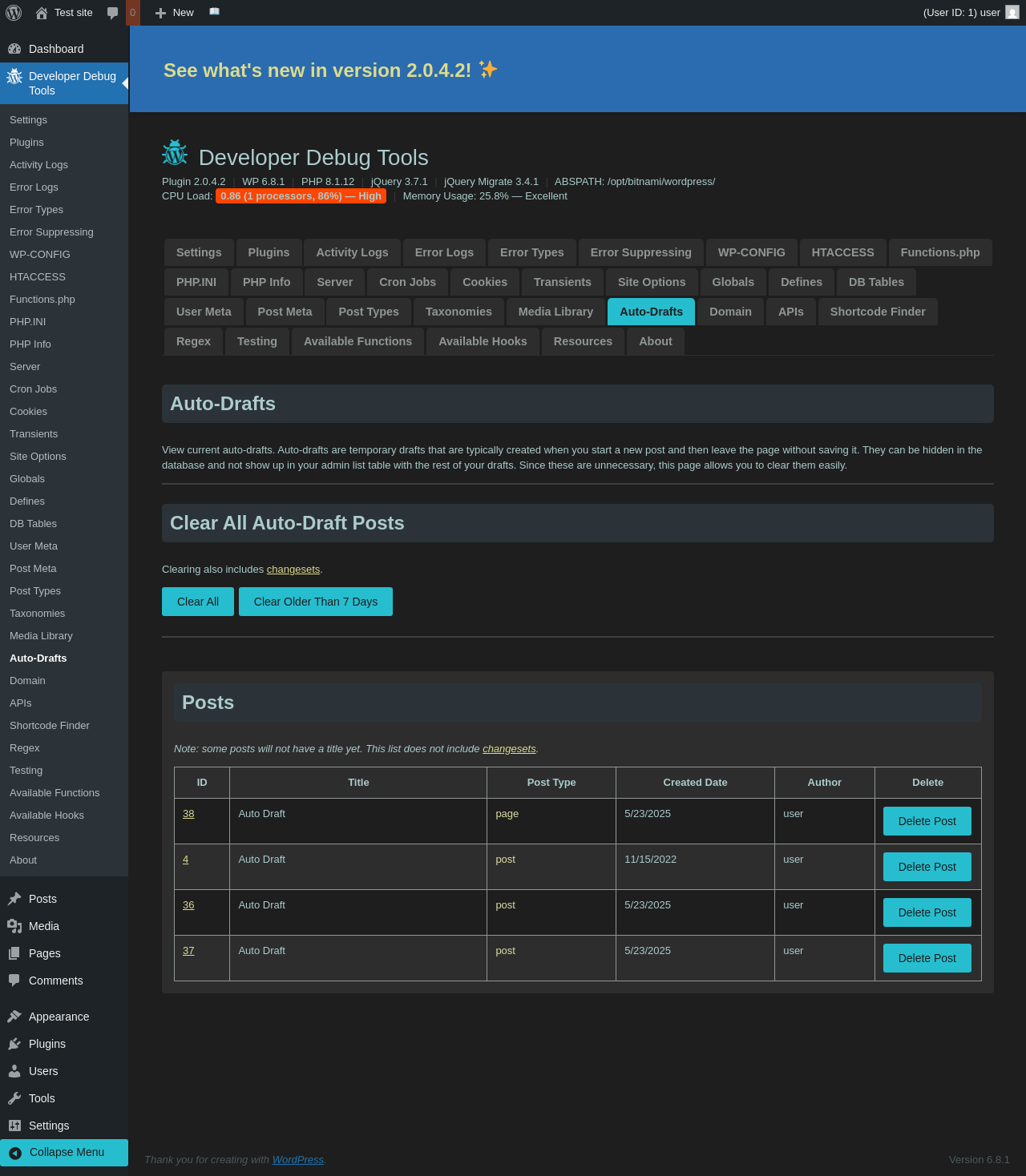 | URL | /wp-admin/admin.php?page=dev-debug-tools&tab=autodrafts |