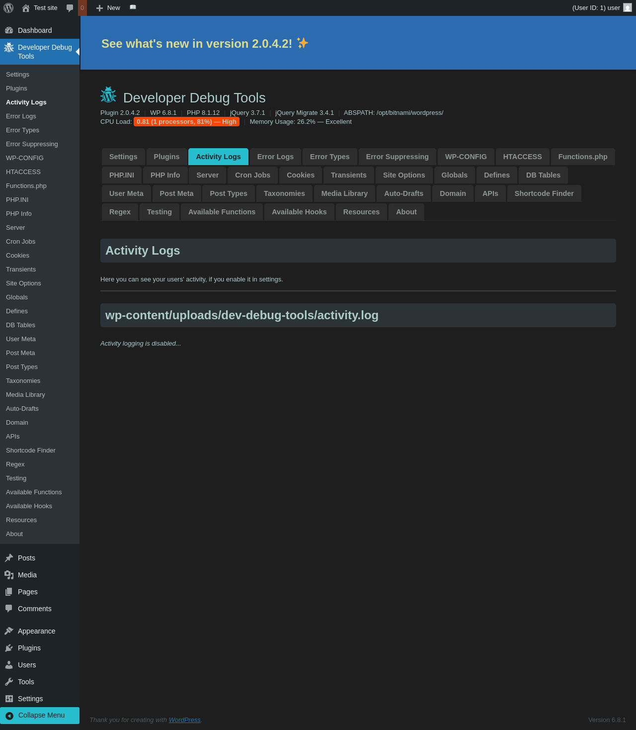 | URL | /wp-admin/admin.php?page=dev-debug-tools&tab=activity |