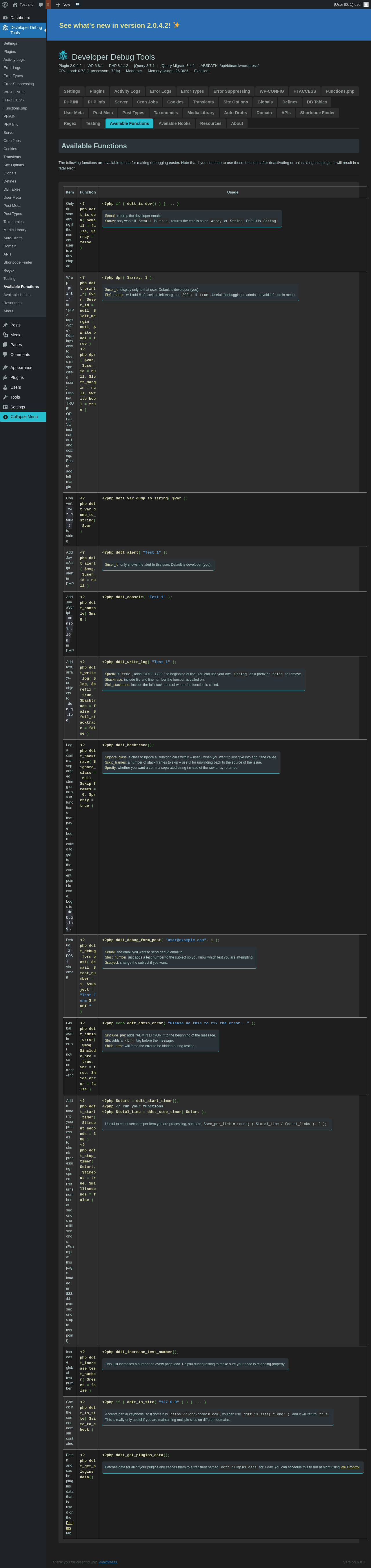 | URL | /wp-admin/admin.php?page=dev-debug-tools&tab=functions |