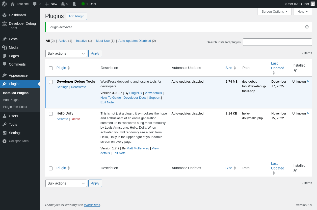 Does Developer Debug Tools work with WordPress 6.9 and PHP 8.1.12? A smoke test was performed on .