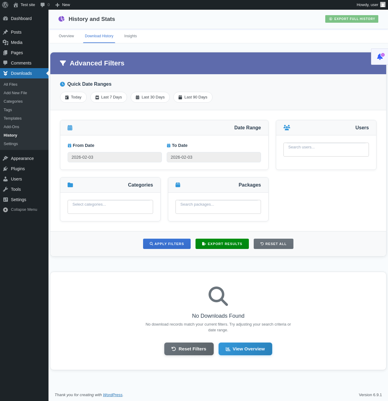 Does Download Manager work with WordPress 6.9.1 and PHP 8.1.12? A smoke test was performed on .