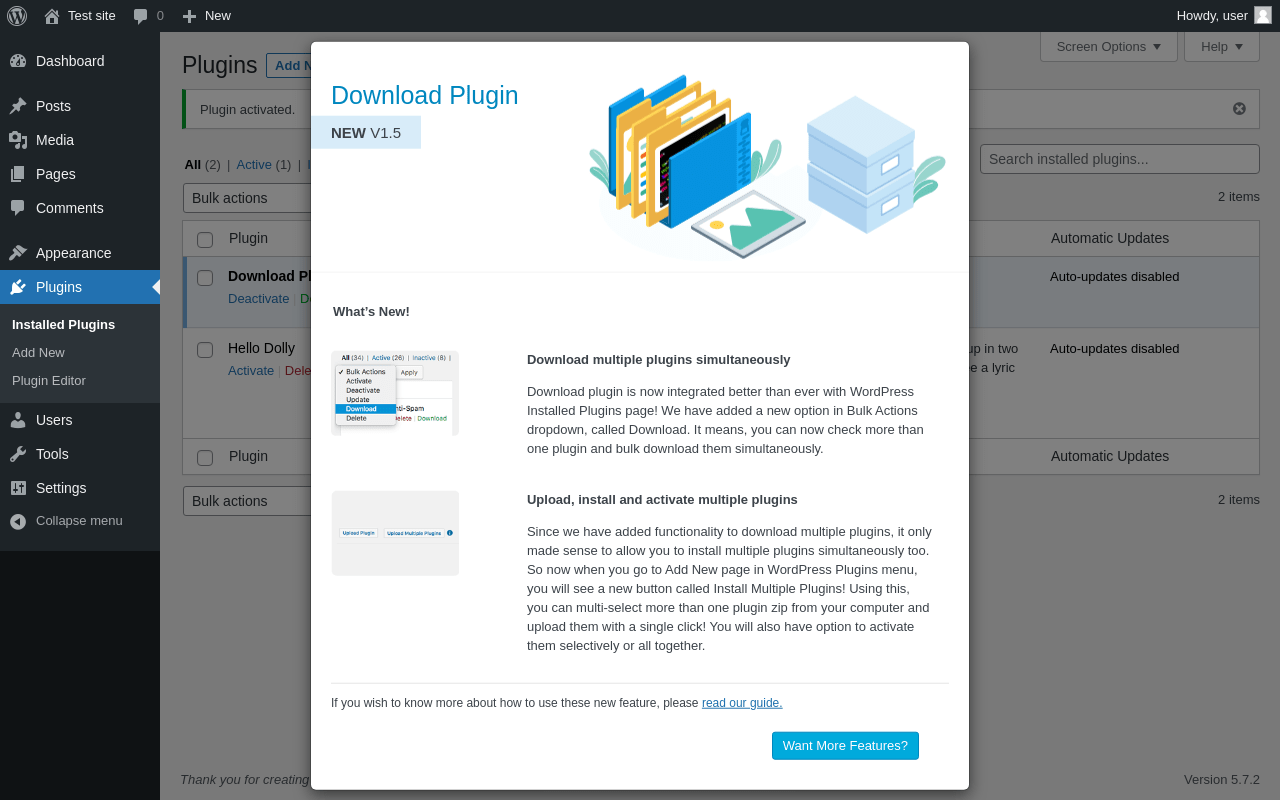 Does Download Plugin work with WordPress 5.7.2 and PHP 7.4.8? A smoke test was performed on .