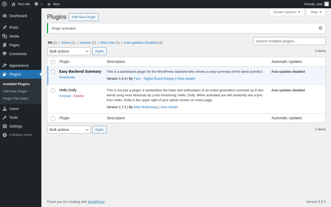 | WordPress.org page | https://wordpress.org/plugins/easy-backend-summary/ |