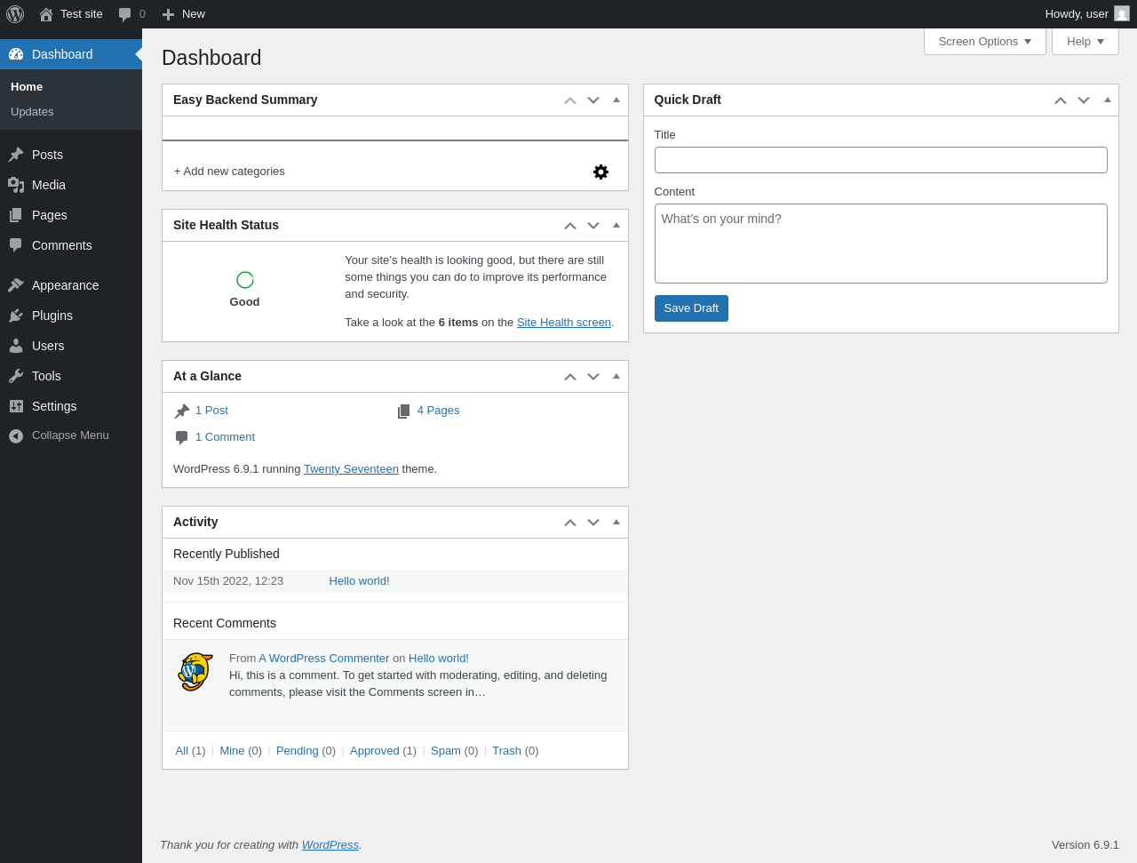 Does Easy Backend-Summary work with WordPress 6.9.1 and PHP 8.1.12? A smoke test was performed on .