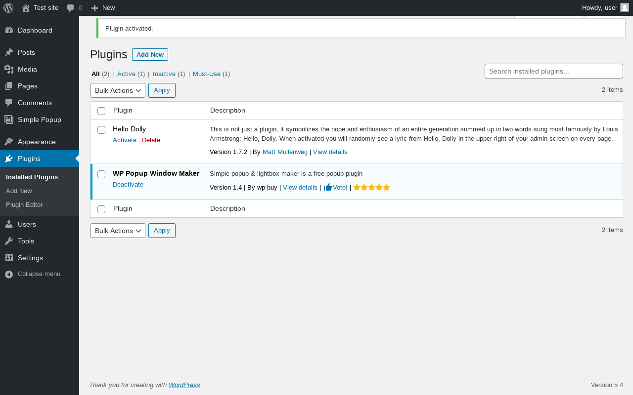 Does WP Popup Window Maker work with WordPress 5.4 and PHP 7.2.16? A smoke test was performed on .