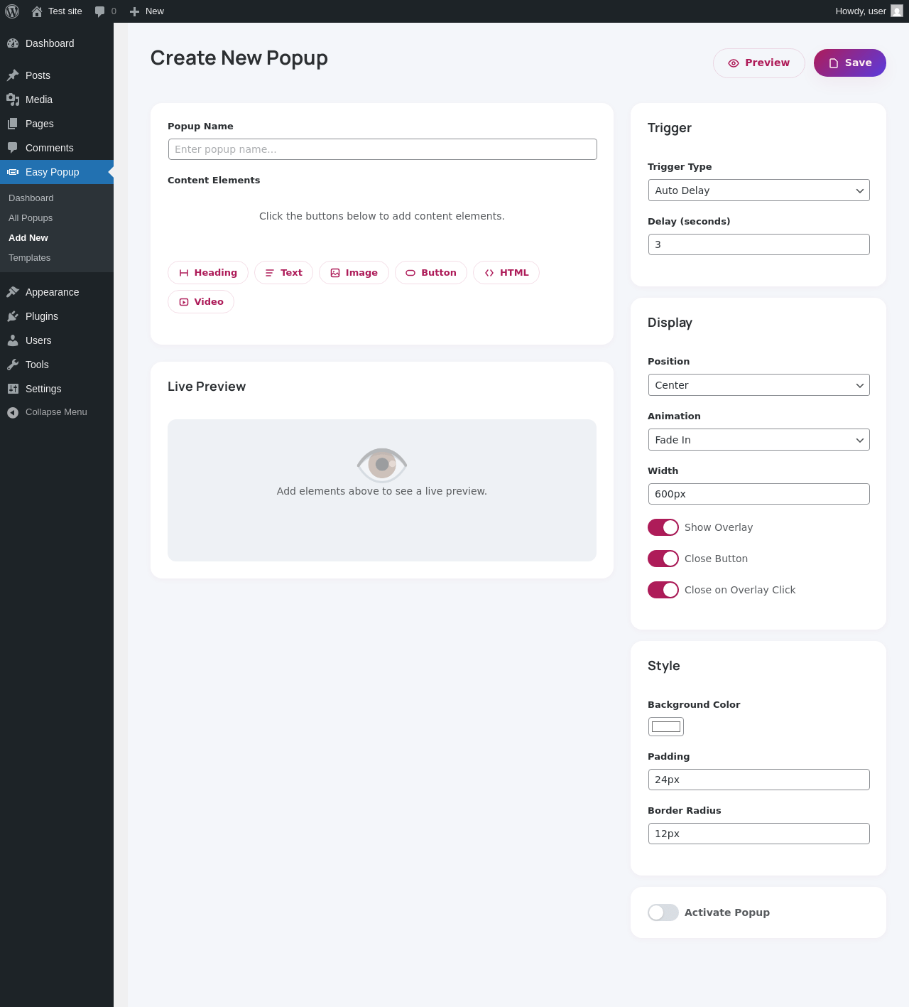 | URL | /wp-admin/admin.php?page=eplmkr-popups |