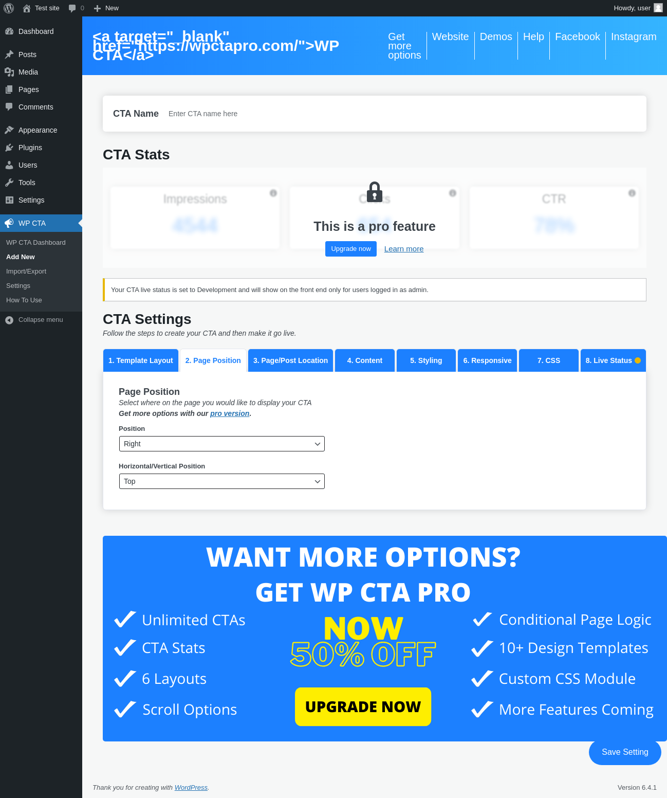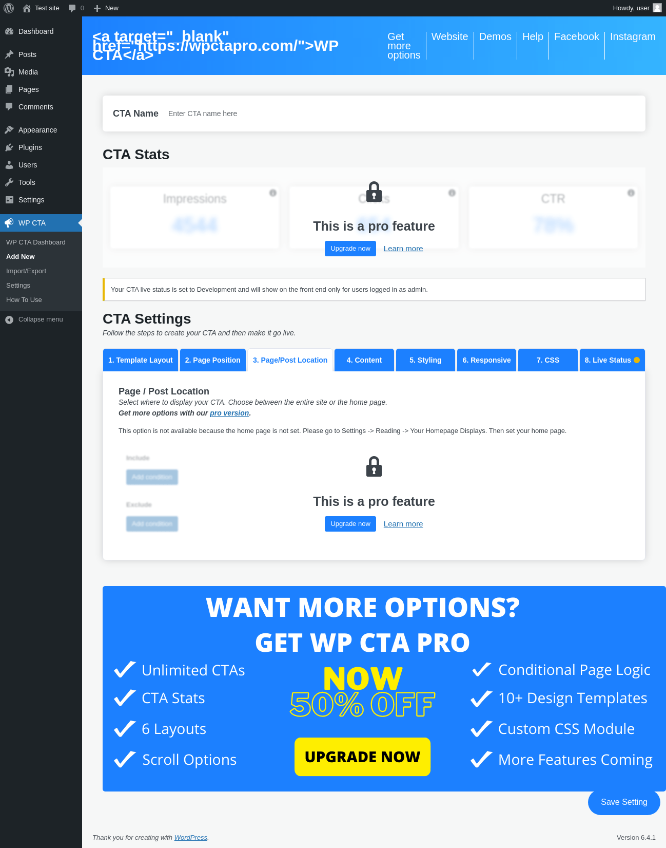 Does WP CTA work with WordPress 6.4.1 and PHP 8.1.12? A smoke test was performed on .