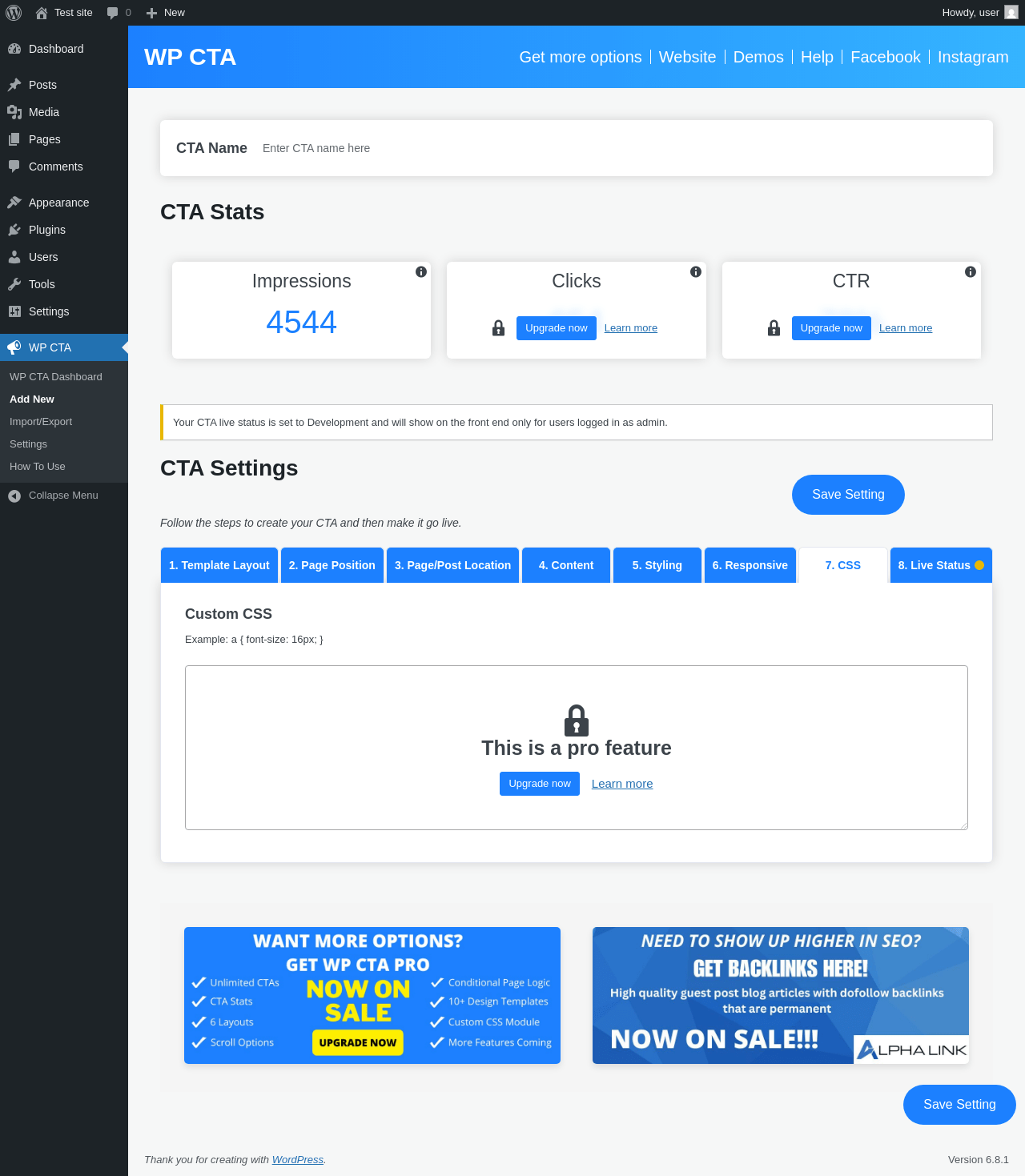 Does WP CTA work with WordPress 6.8.1 and PHP 8.1.12? A smoke test was performed on .