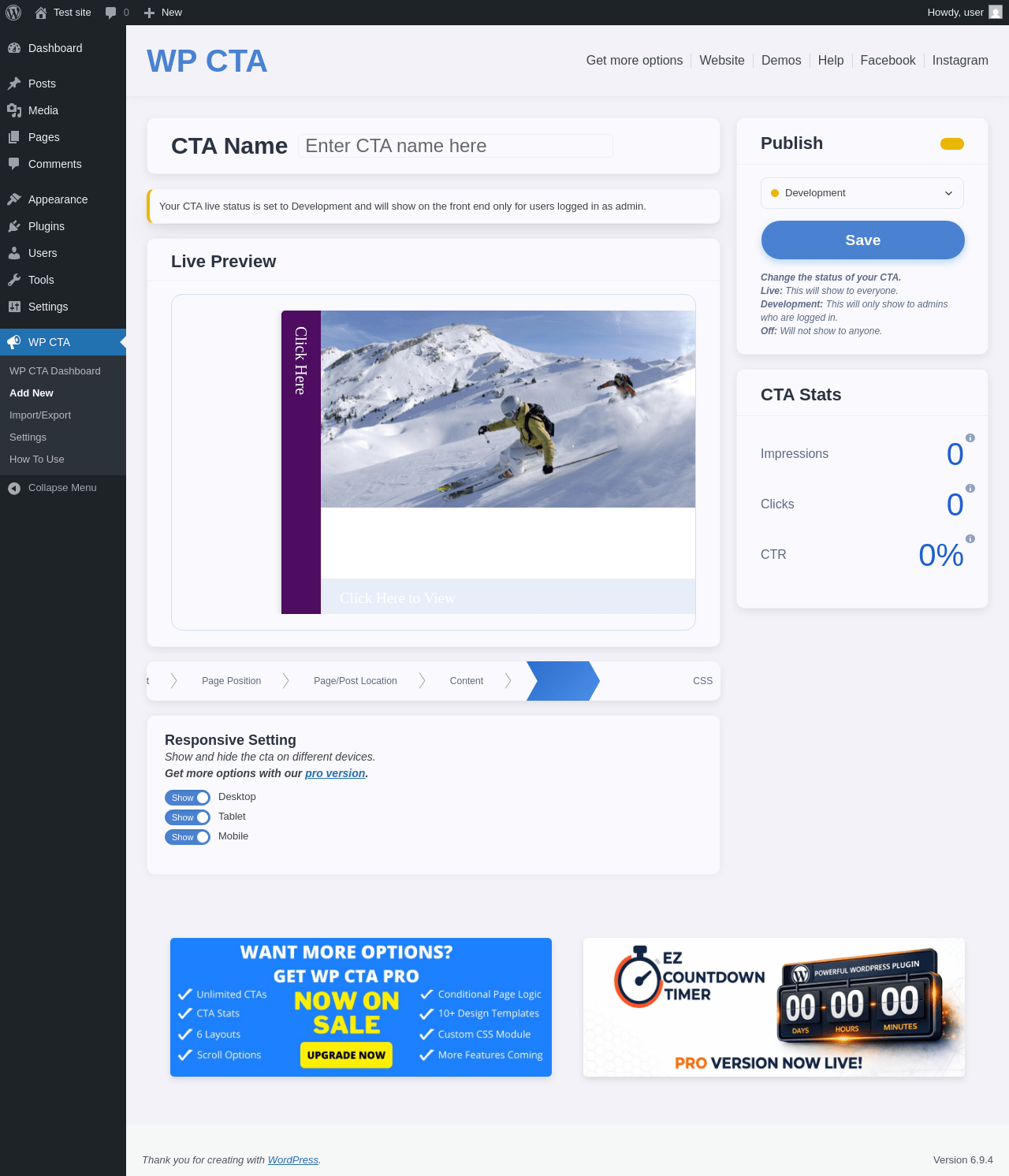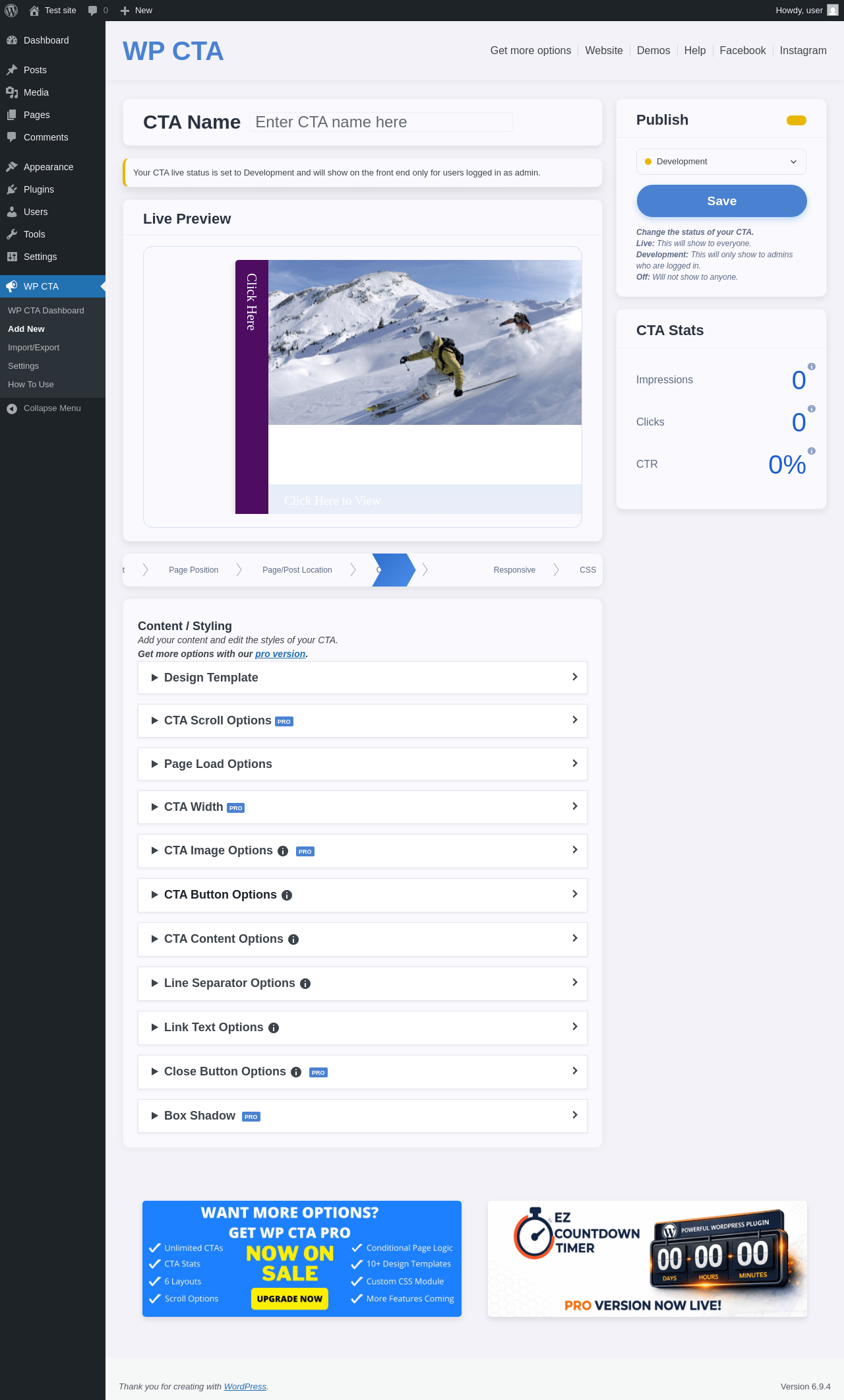 Does "WP CTA - sticky CTA builder, generate leads, promote sales" work with WordPress 6.9.4 and PHP 8.1.12? A smoke test was performed on .
