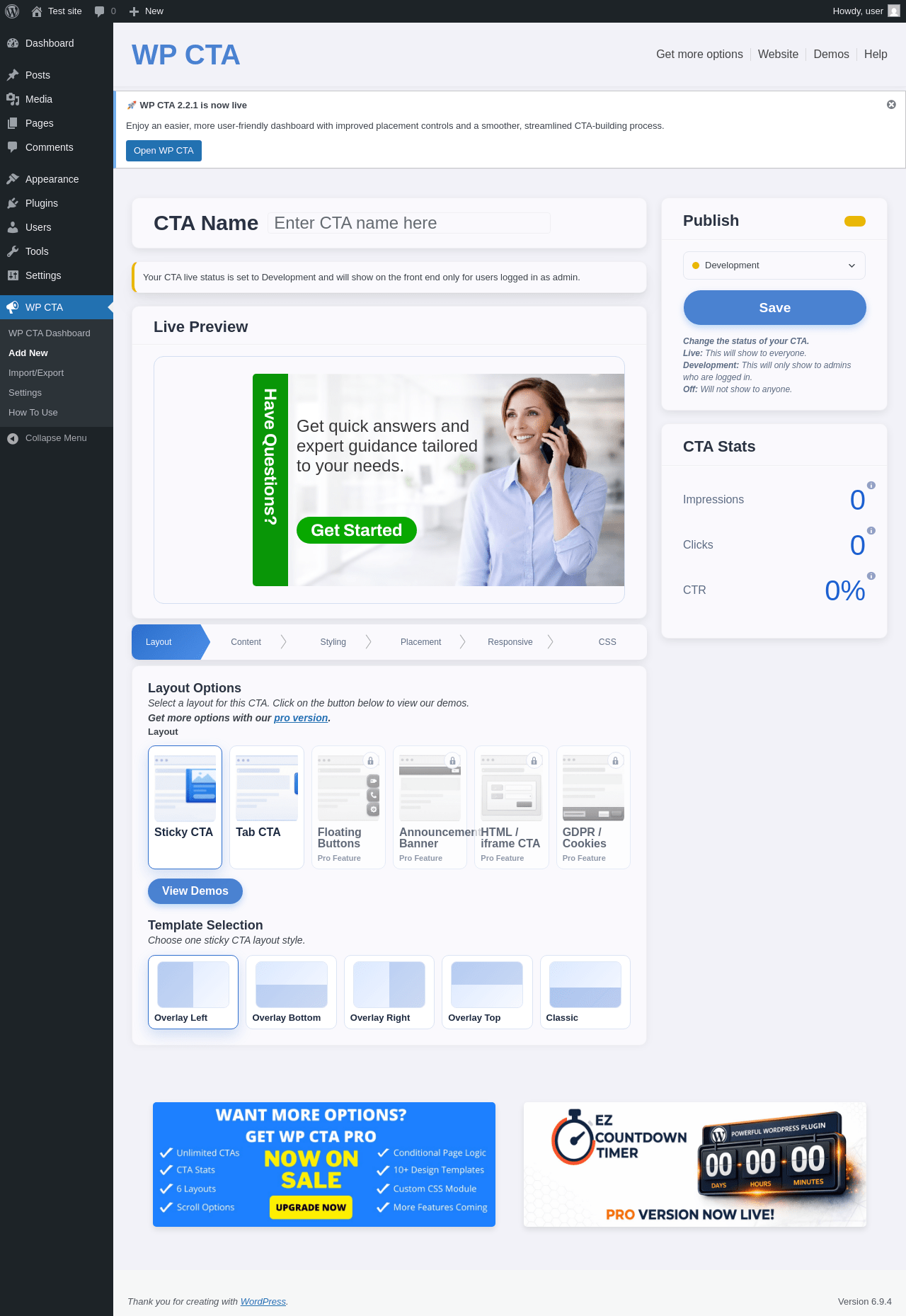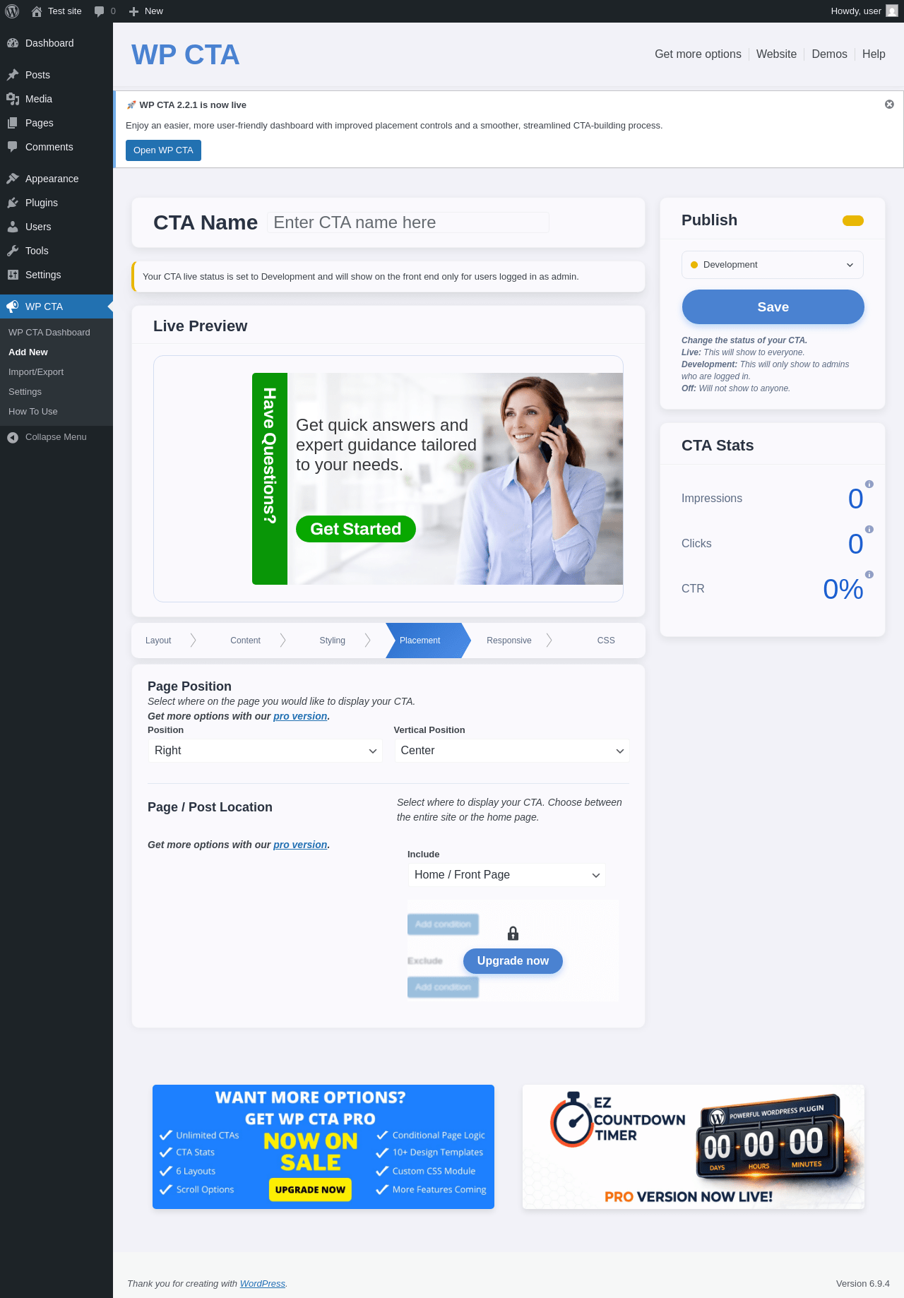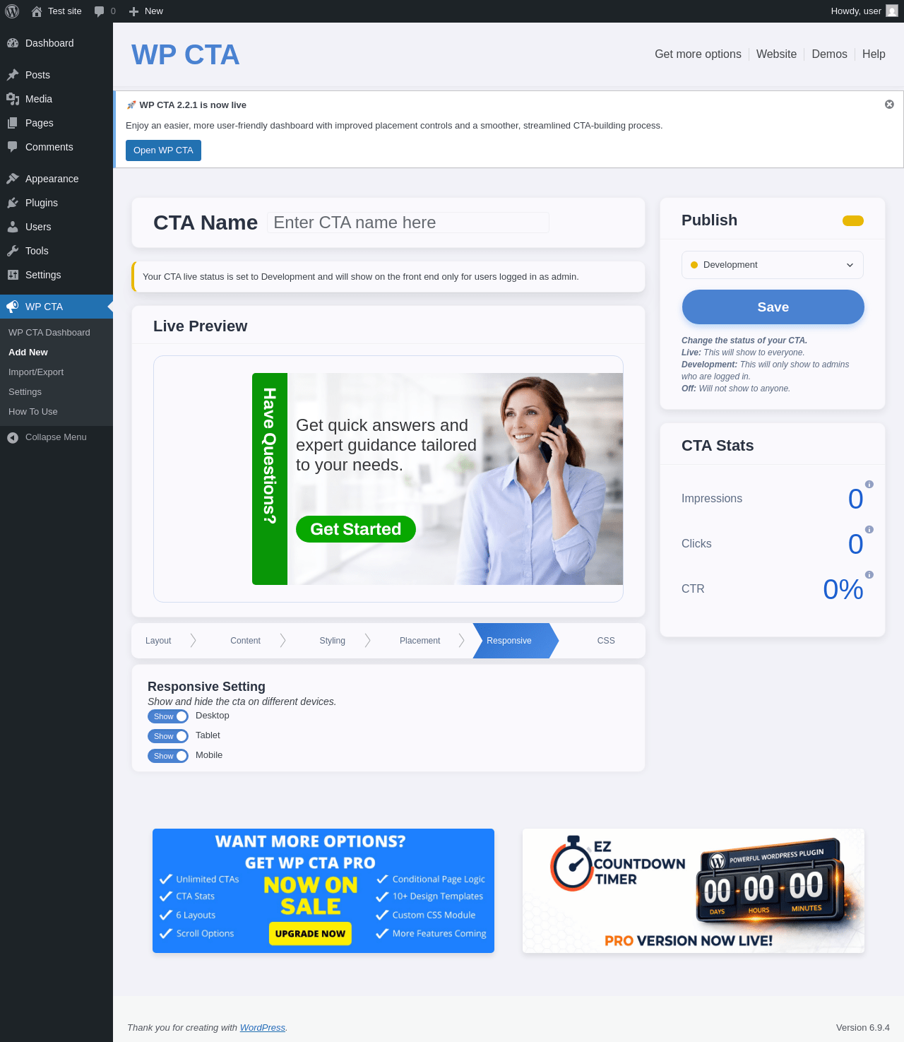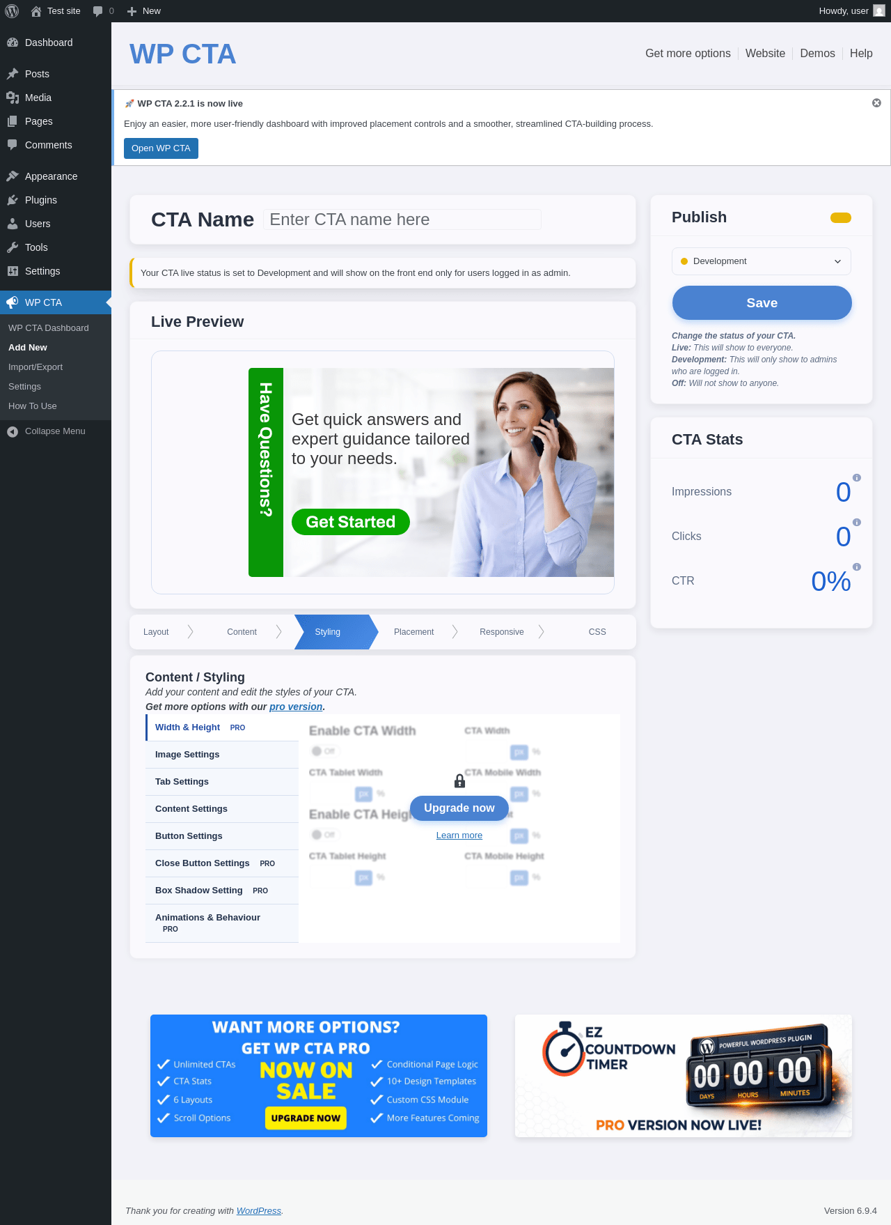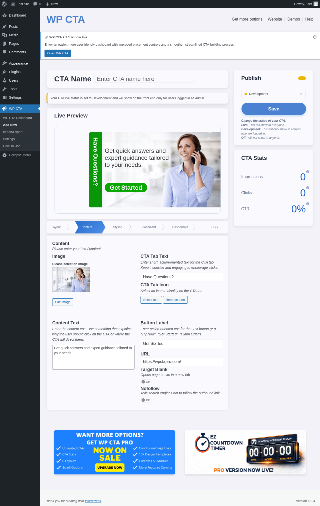 Does "WP CTA - Call Now Button, Sticky Button & Call to Action Builder" work with WordPress 6.9.4 and PHP 8.1.12? A smoke test was performed on .