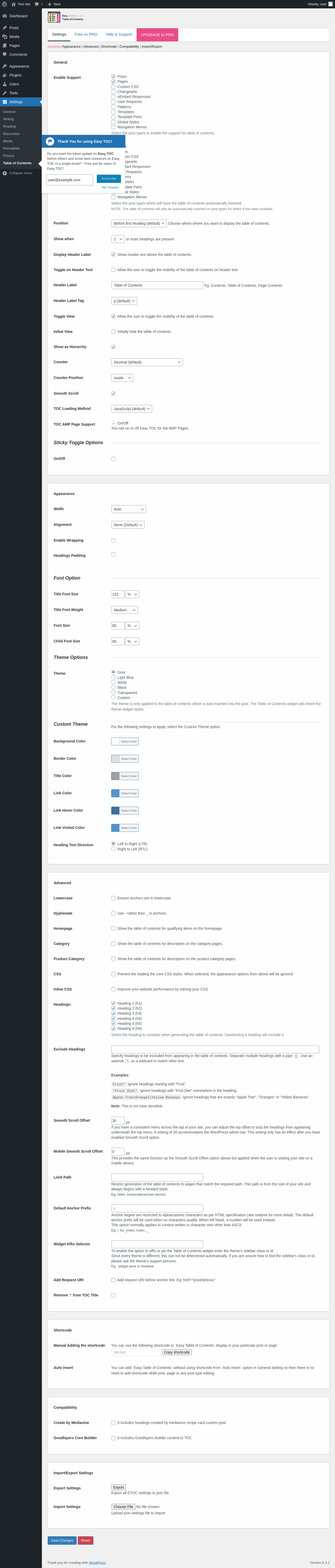| URL | /wp-admin/options-general.php?page=table-of-contents#welcome |