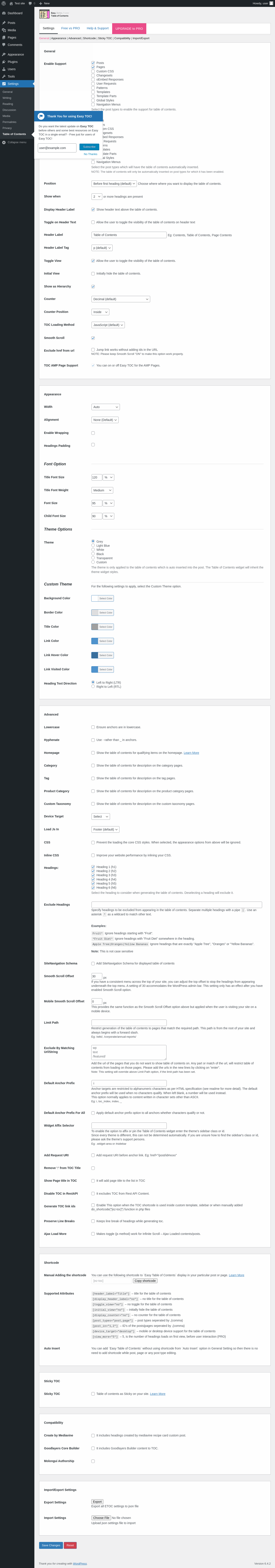 | URL | /wp-admin/options-general.php?page=table-of-contents#welcome |