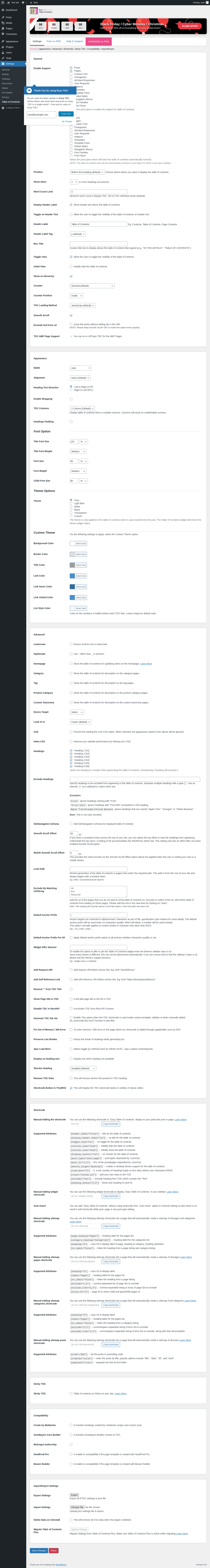 | URL | /wp-admin/options-general.php?page=table-of-contents#welcome |