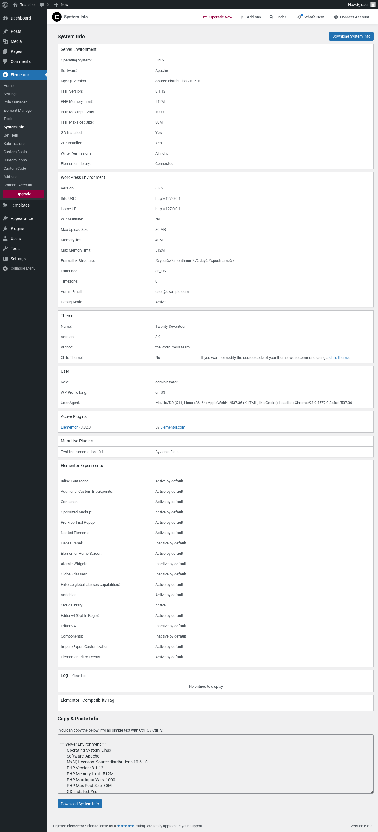 Elementor → System Info