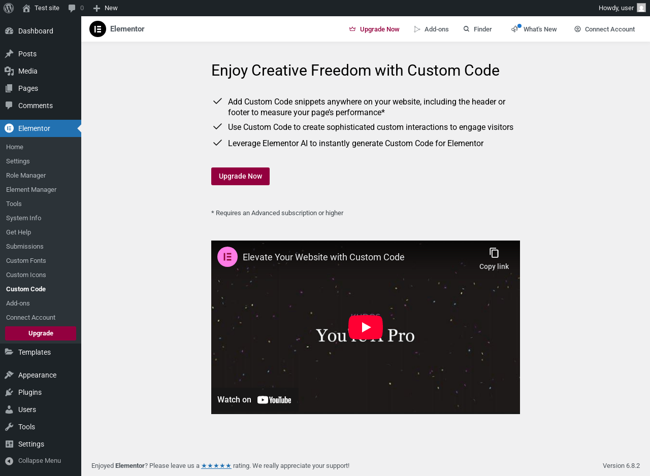 Dashboard ‹ Test site — WordPress