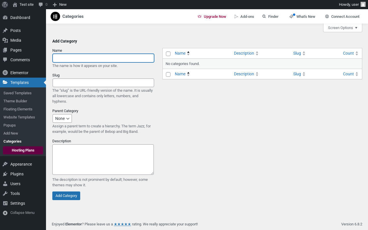 Page screenshot: Templates → Categories