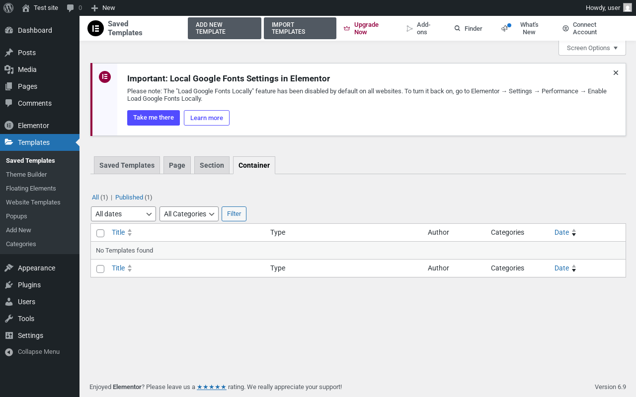 URL /wp-admin/edit.php?post_type=elementor_library&tabs_group&elementor_library_type=container
