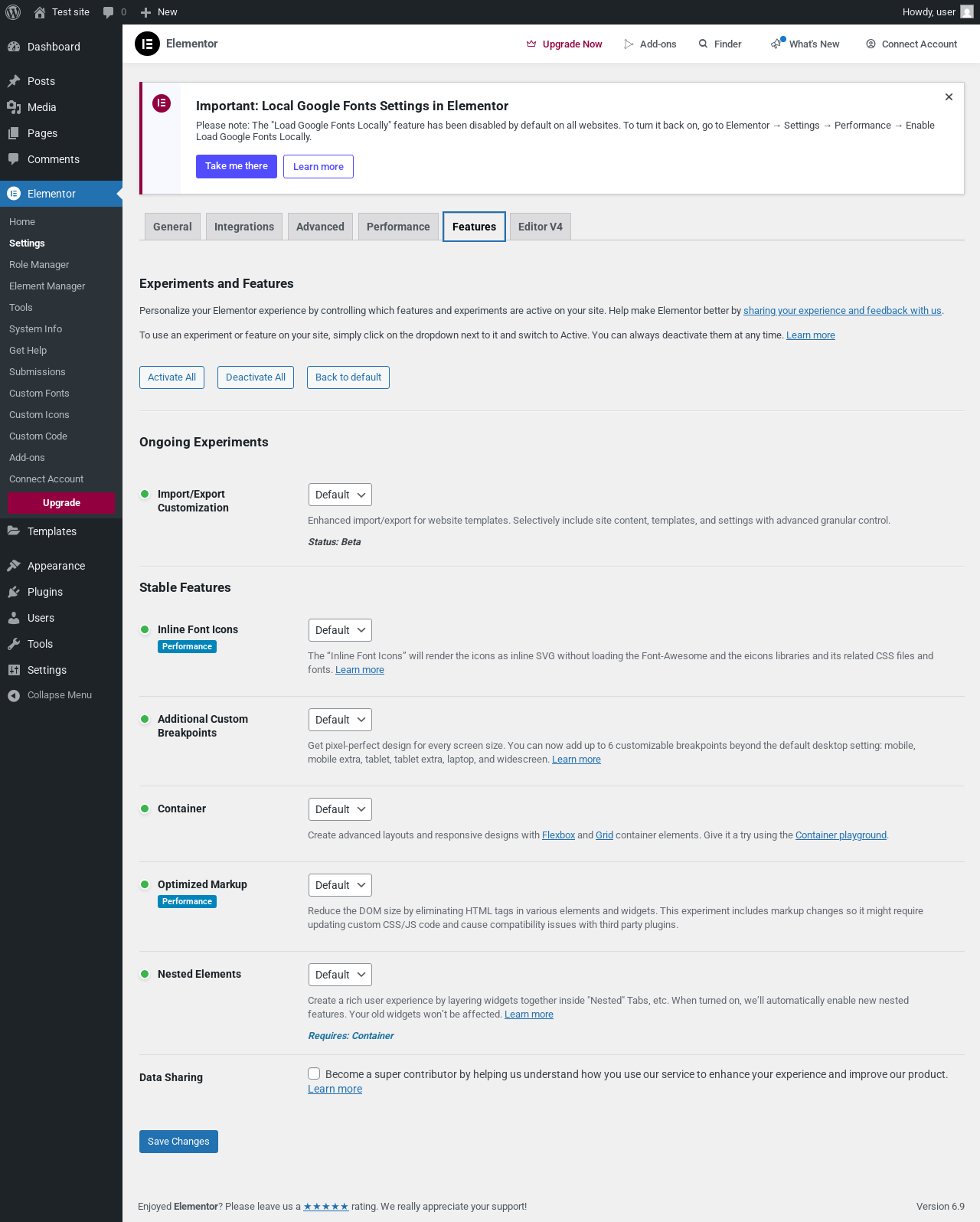 Does Elementor work with WordPress 6.9 and PHP 8.1.12? A smoke test was performed on .