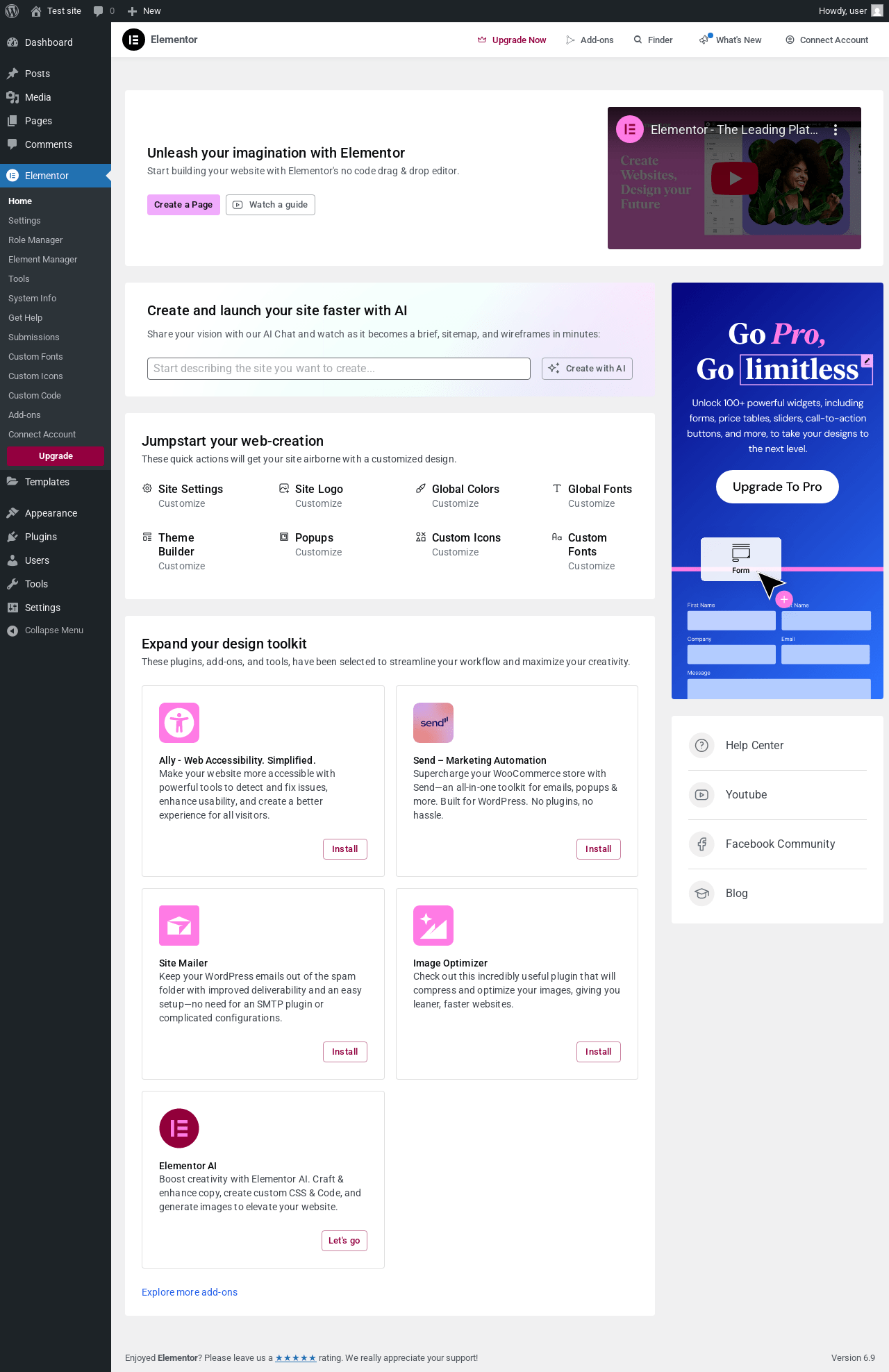 Dashboard ‹ Test site — WordPress