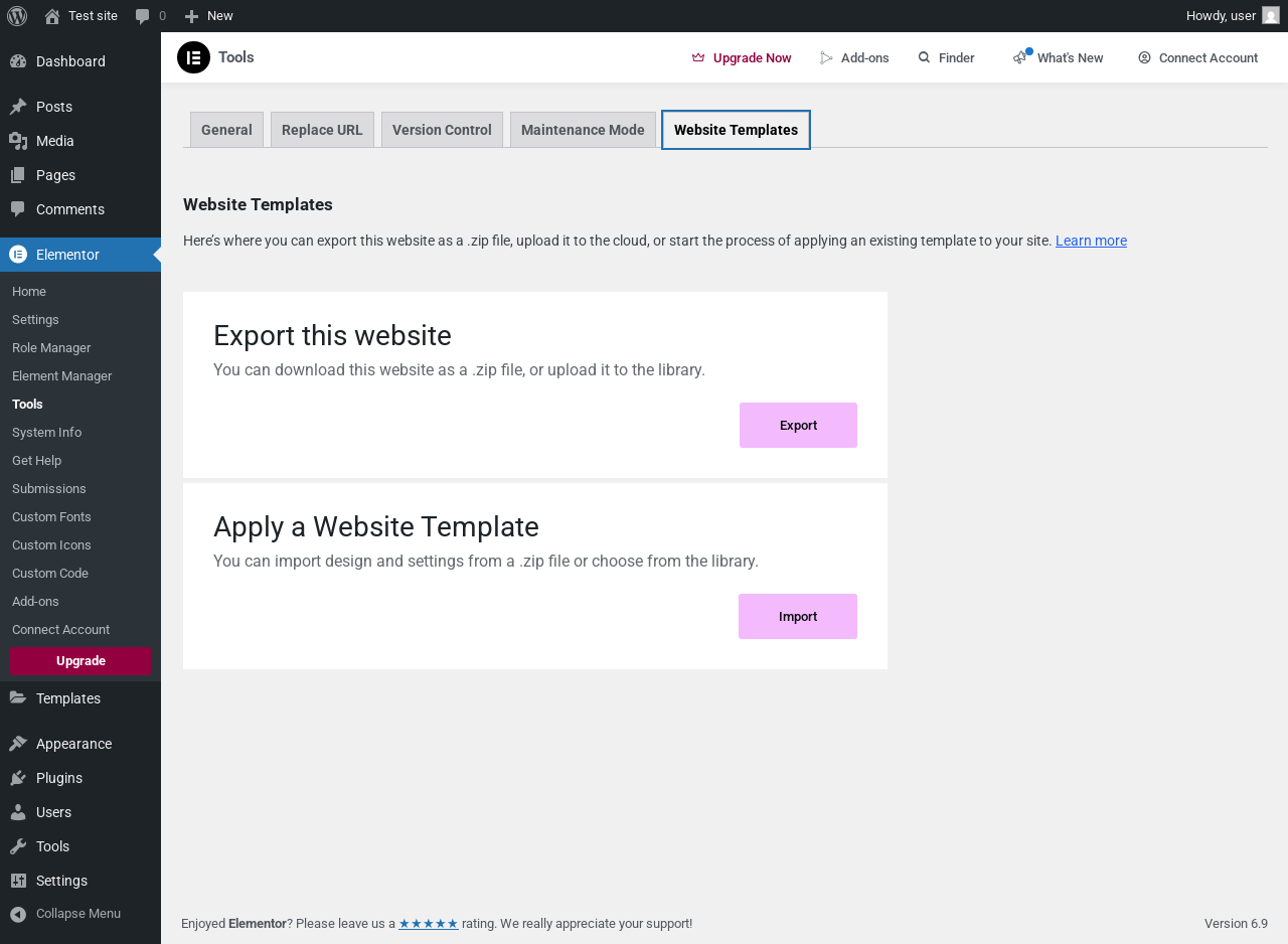 Elementor → Tools → Website Templates