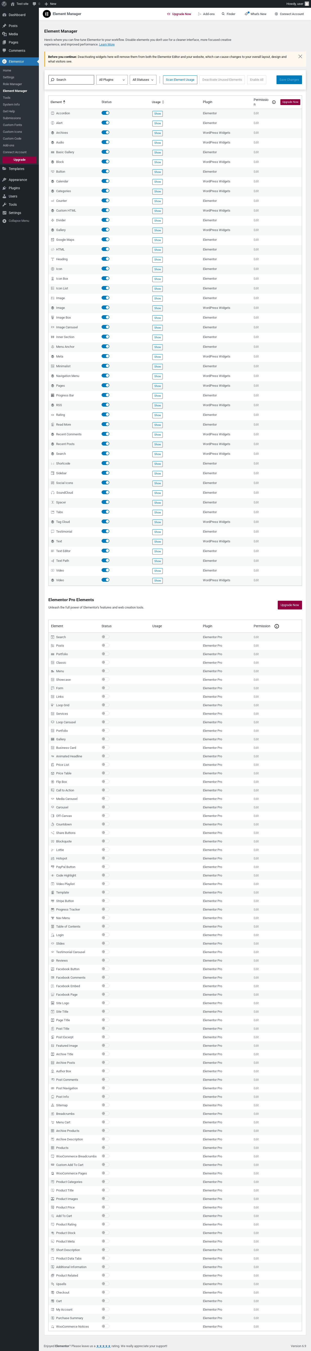 Elementor → Element Manager