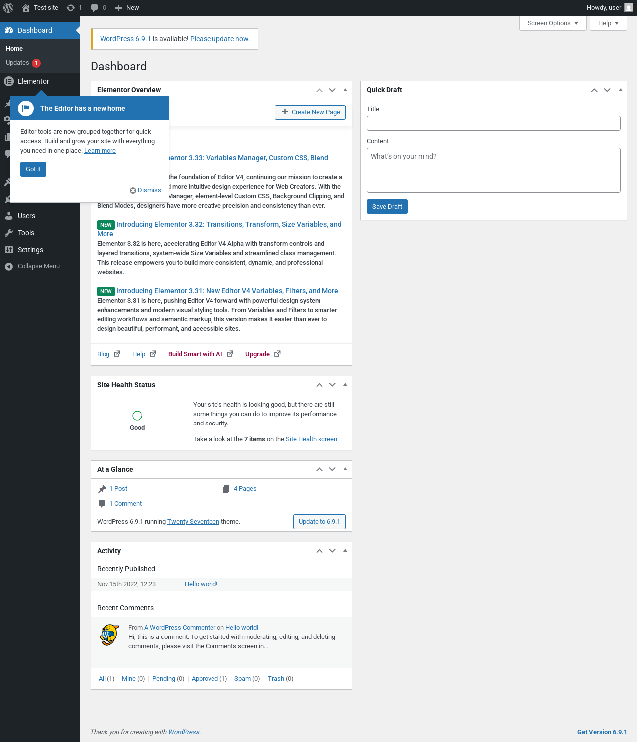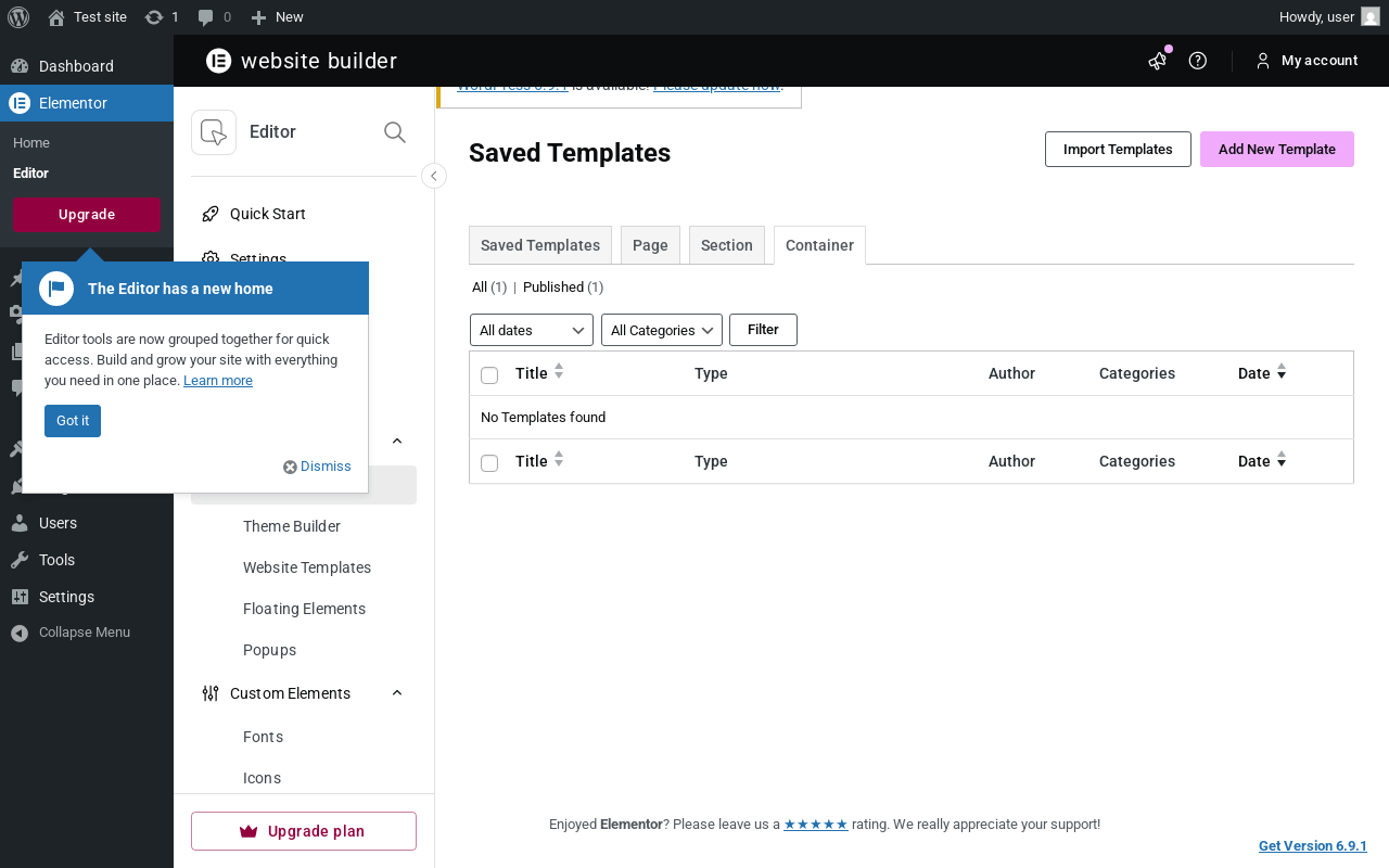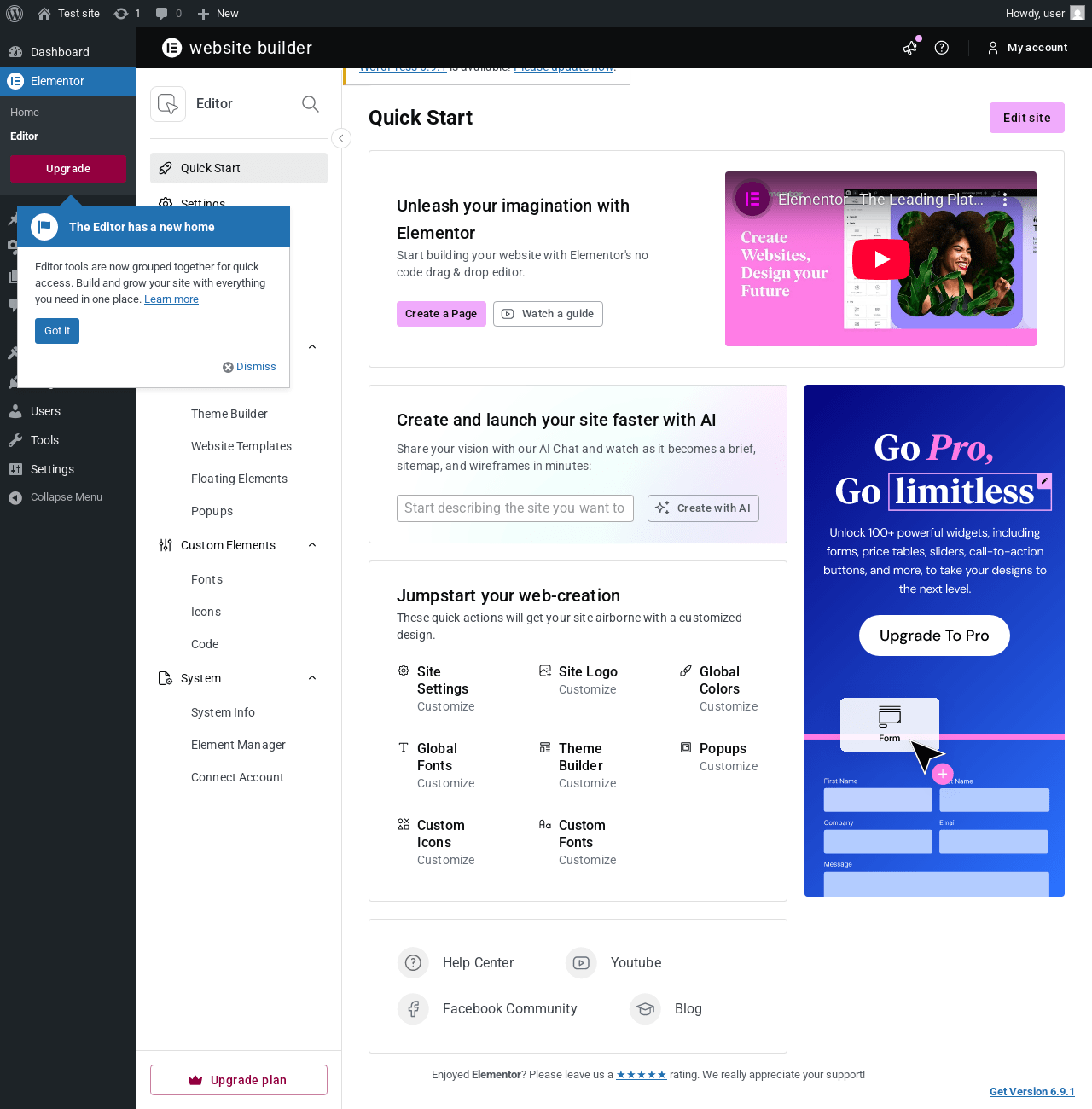 "message": "DOMException: Failed to execute 'querySelector' on 'Element': '.toggle__wrapper:has(.toggle__switcher)' is not a valid selector.\n at https://elementor.com/pro/?utm_source=upgrade-one-wp-menu&utm_medium=wp-dash&utm_campaign=gopro:5226:41\n at NodeList.forEach (<anonymous>)\n at HTMLDocument.<anonymous> (https://elementor.com/pro/?utm_source=upgrade-one-wp-menu&utm_medium=wp-dash&utm_campaign=gopro:5216:22)",