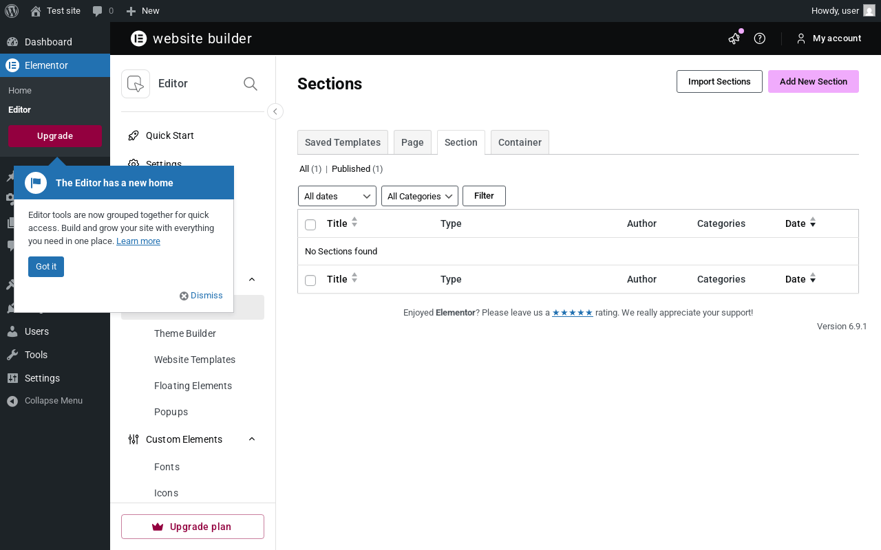 URL /wp-admin/edit.php?post_type=elementor_library&tabs_group&elementor_library_type=section