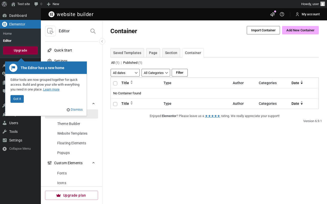 URL /wp-admin/edit.php?post_type=elementor_library&tabs_group&elementor_library_type=container