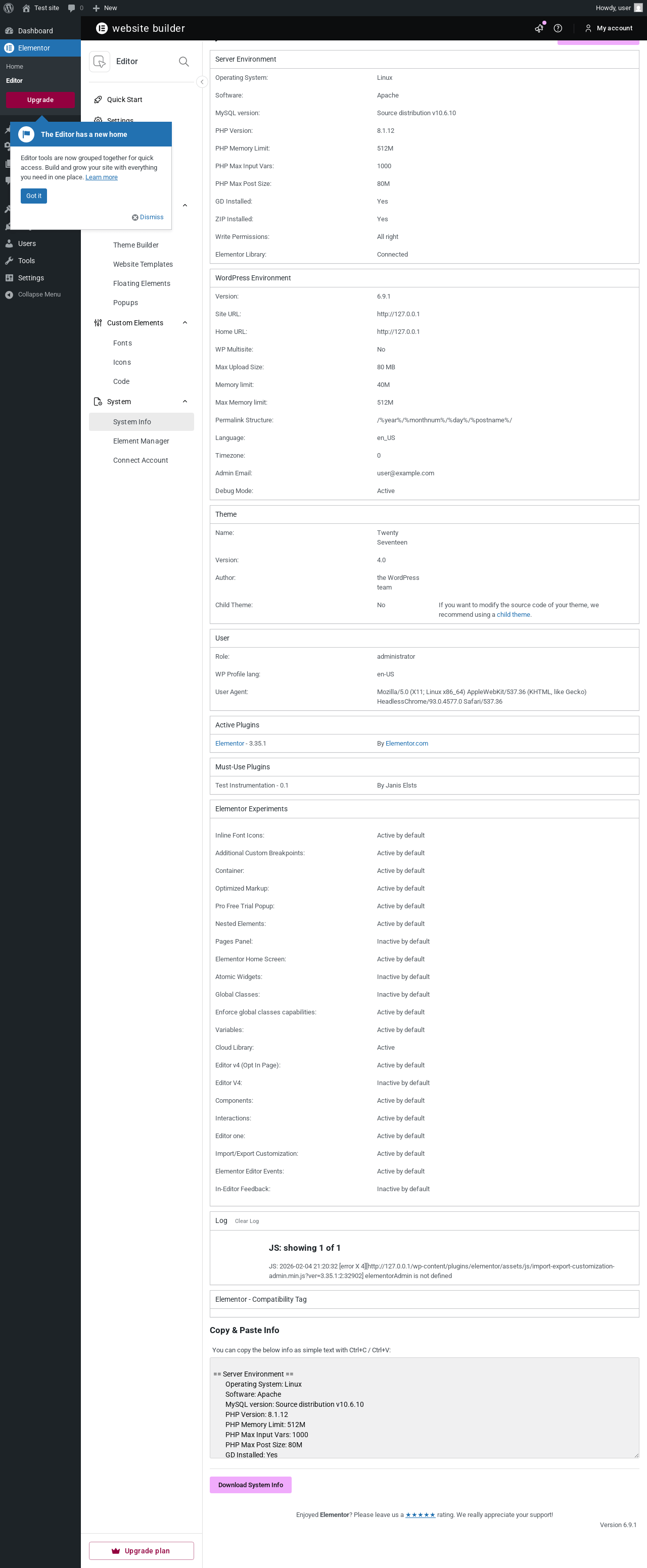 Does Elementor work with WordPress 6.9.1 and PHP 8.1.12? A smoke test was performed on .