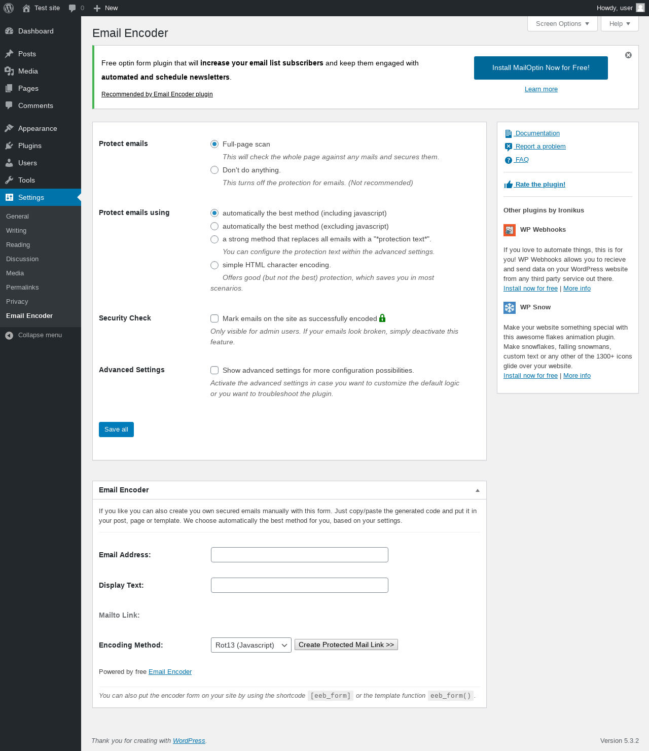 | URL | /wp-admin/options-general.php?page=email-encoder-bundle-option-page |