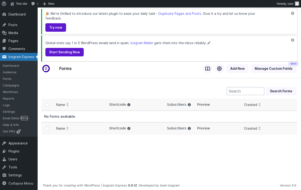 Does "Icegram Express - Email Subscribers, Newsletters and Marketing Automation Plugin" work with WordPress 6.9 and PHP 8.1.12? A smoke test was performed on .