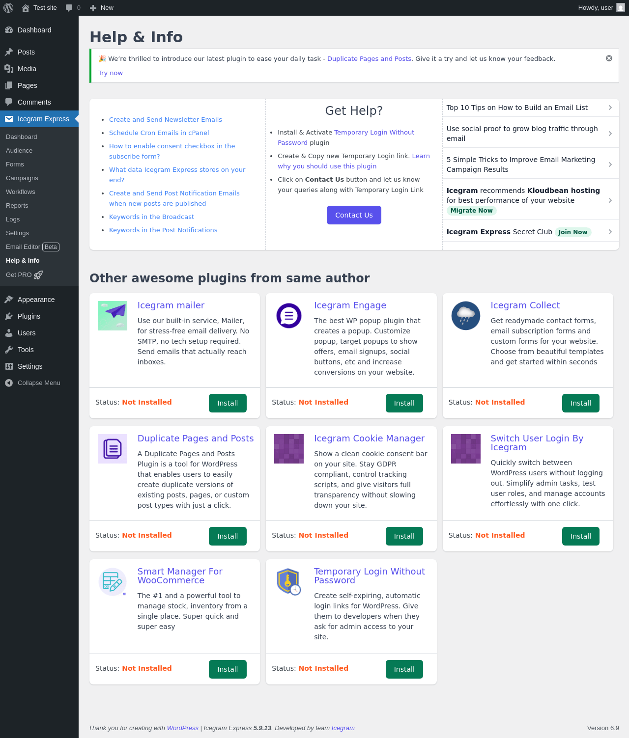 Does "Icegram Express - Email Subscribers, Newsletters and Marketing Automation Plugin" work with WordPress 6.9 and PHP 8.1.12? A smoke test was performed on .
