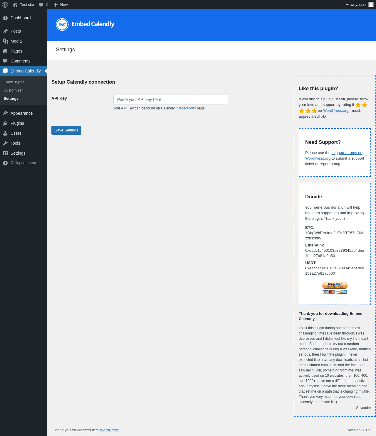 Does Embed Calendly work with WordPress 5.9.3 and PHP 7.4.8? A smoke test was performed on .