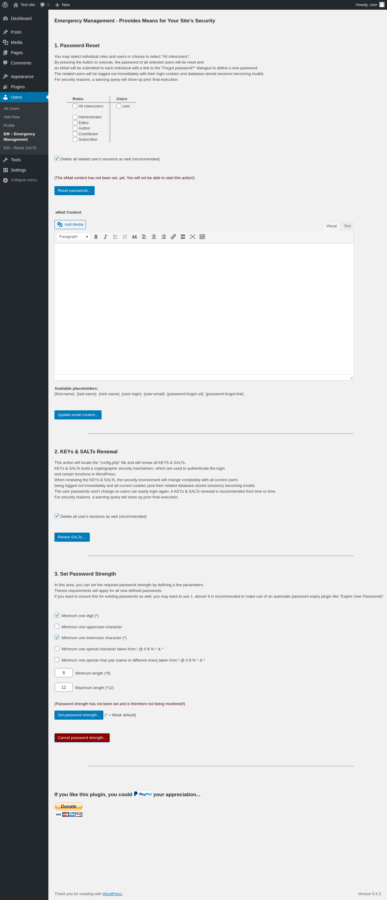 Does Emergency Management work with WordPress 5.5.3 and PHP 7.4.8? A smoke test was performed on .