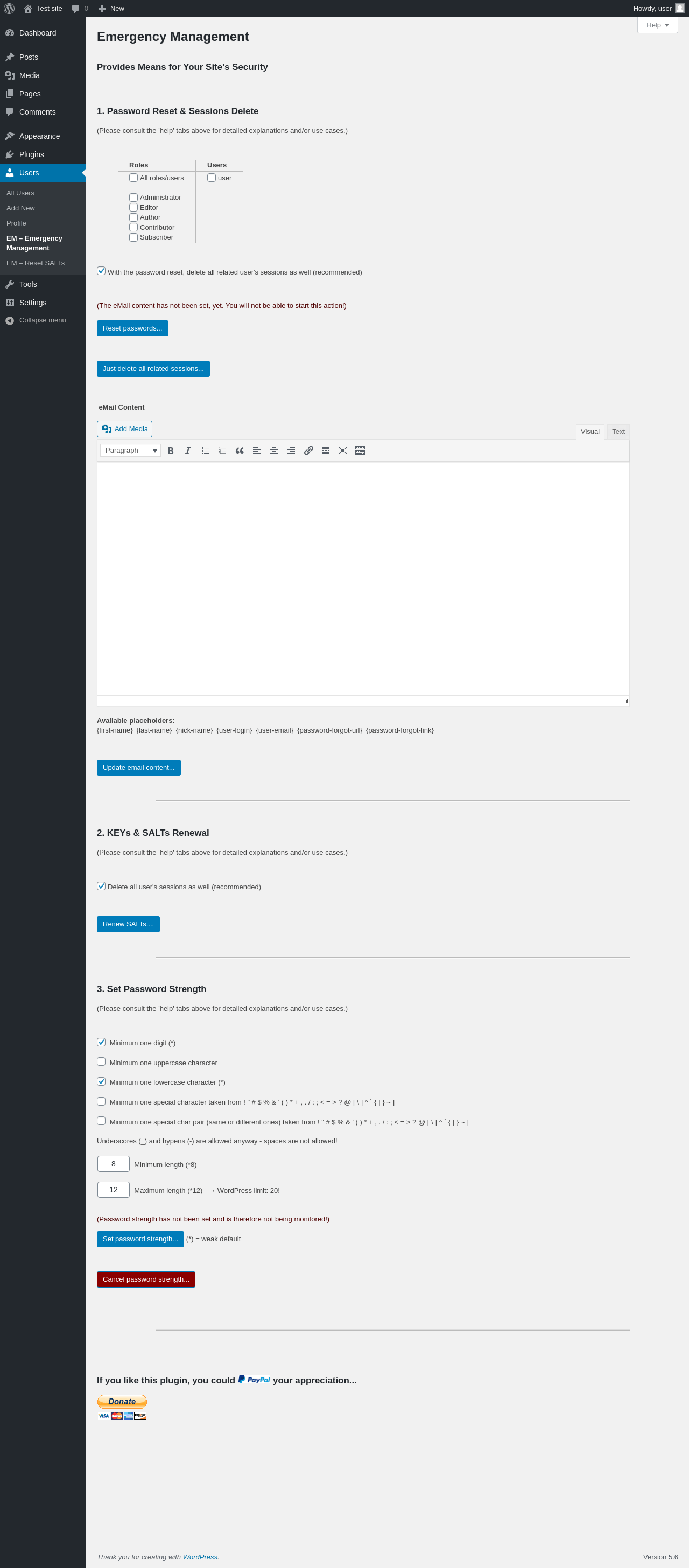 Does Emergency Management work with WordPress 5.6 and PHP 7.4.8? A smoke test was performed on .