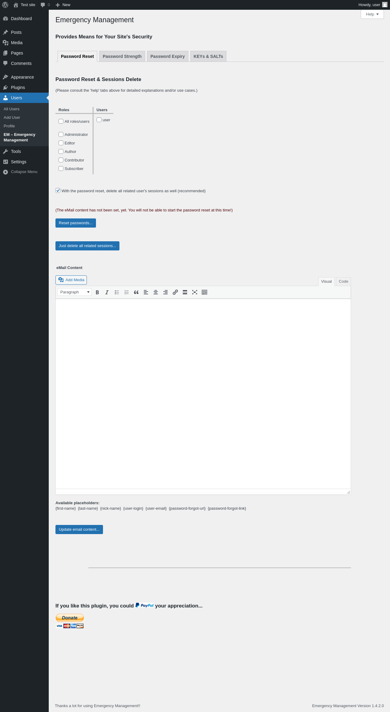 | URL | /wp-admin/users.php?page=mfem-emergency-management&tab=pw-strength |