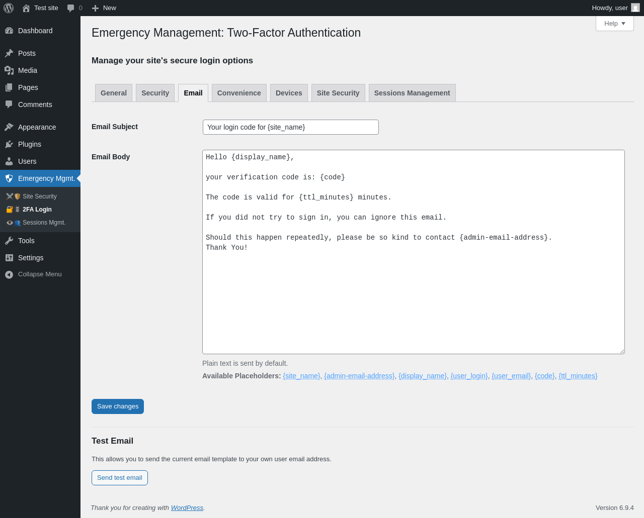 | URL | /wp-admin/admin.php?page=2fa-login&tab=email |