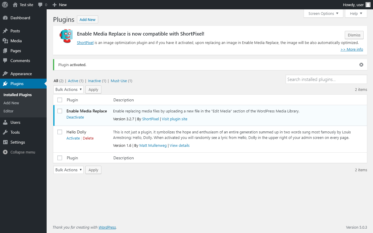 Does Enable Media Replace work with WordPress 5.0.3 and PHP 7.0.16? A smoke test was performed on .