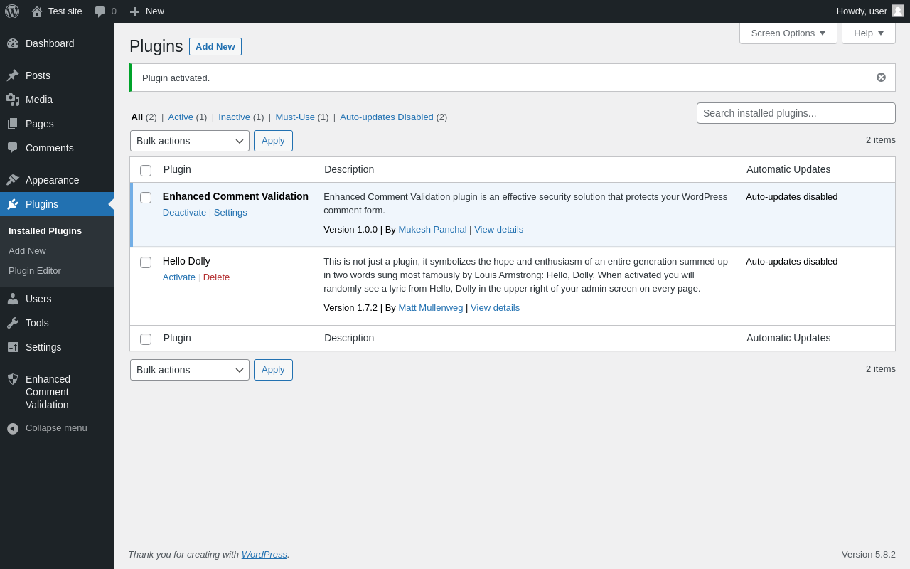 Does Enhanced Comment Validation work with WordPress 5.8.2 and PHP 7.4.8? A smoke test was performed on .