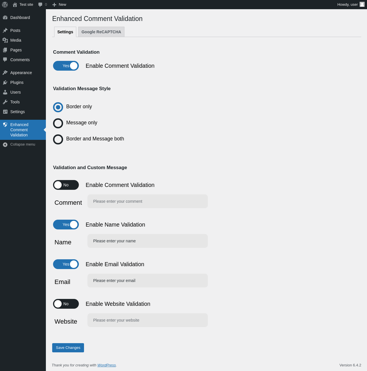 | URL | /wp-admin/admin.php?page=enhanced-comment-validation&tab=google_captcha |