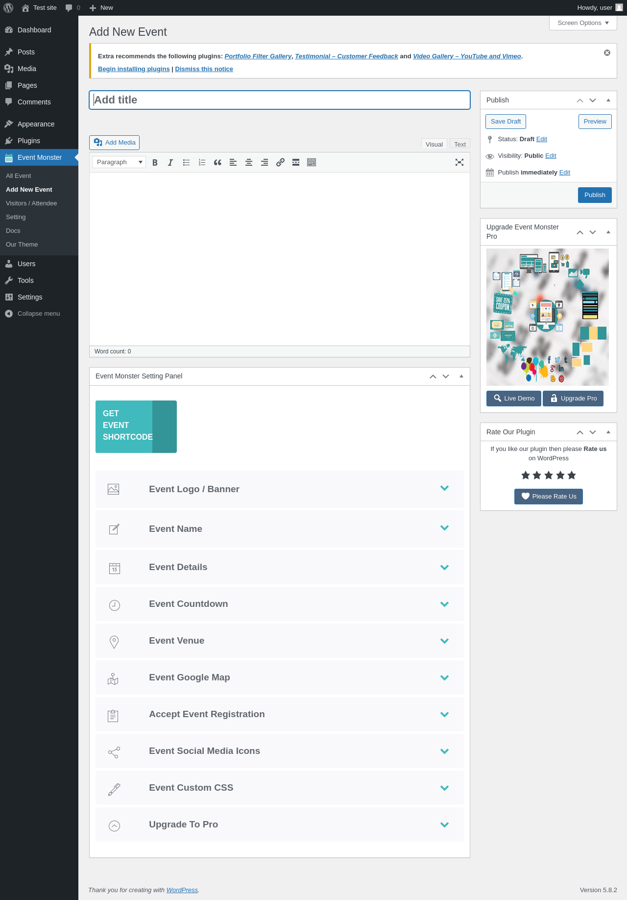 Does Event Monster work with WordPress 5.8.2 and PHP 7.4.8? A smoke test was performed on .