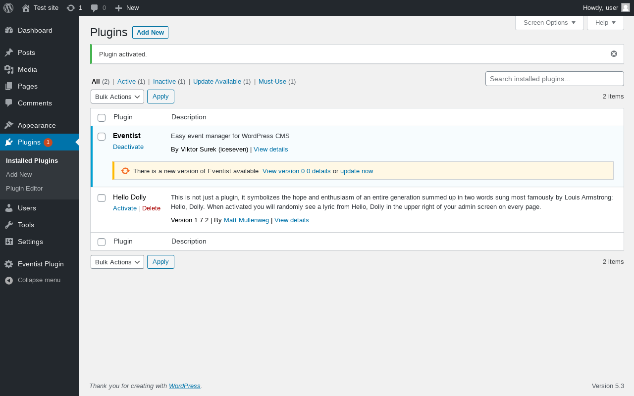 Does Eventist work with WordPress 5.3 and PHP 7.2.16? A smoke test was performed on .
