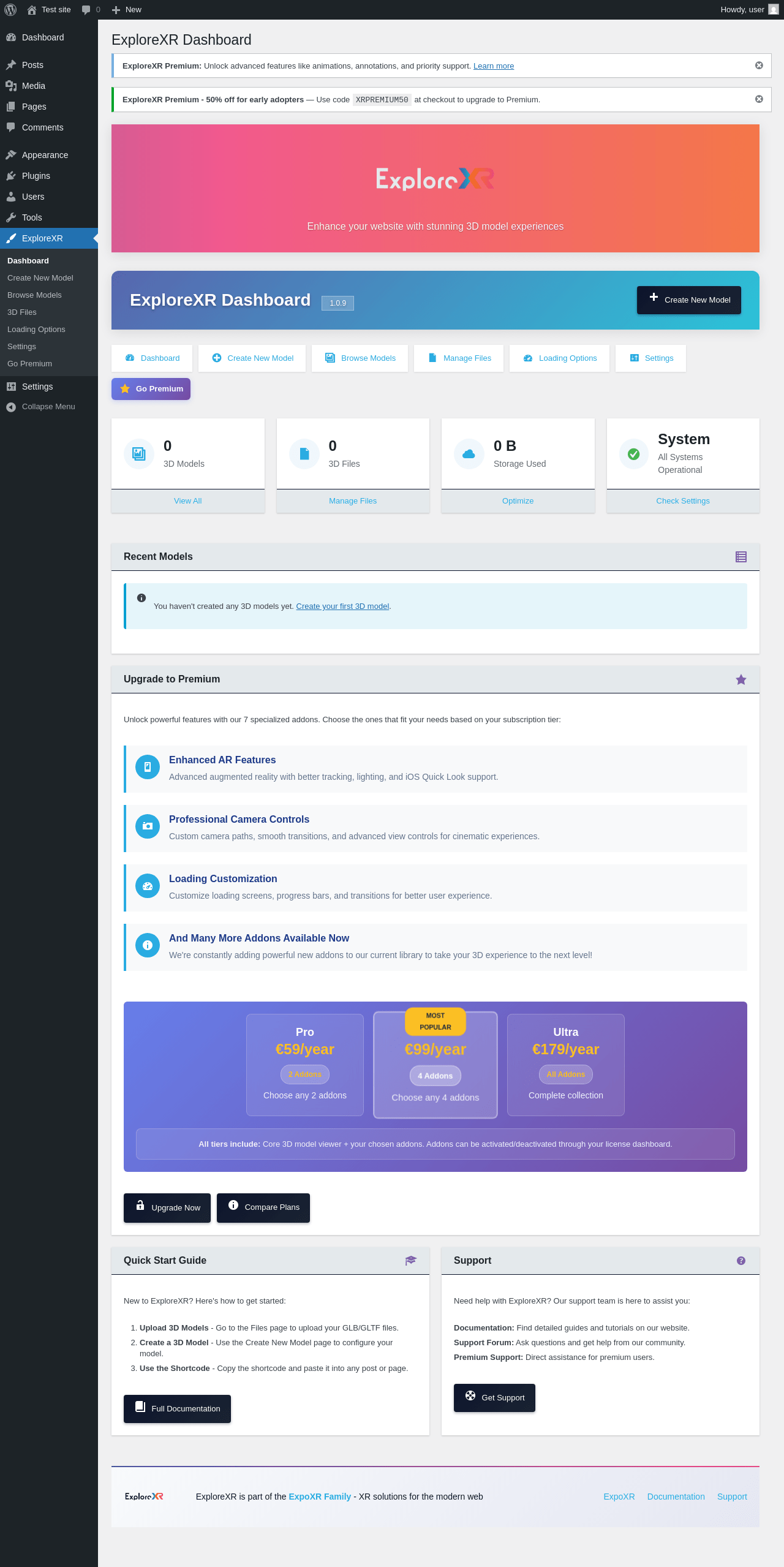 | URL | /wp-admin/admin.php?page=explorexr-browse-models |