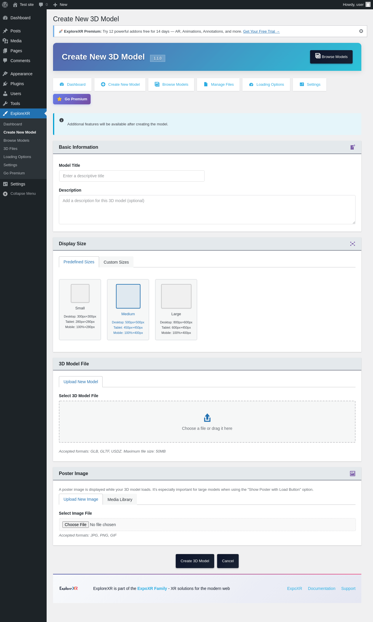| URL | /wp-admin/admin.php?page=explorexr-create-model |