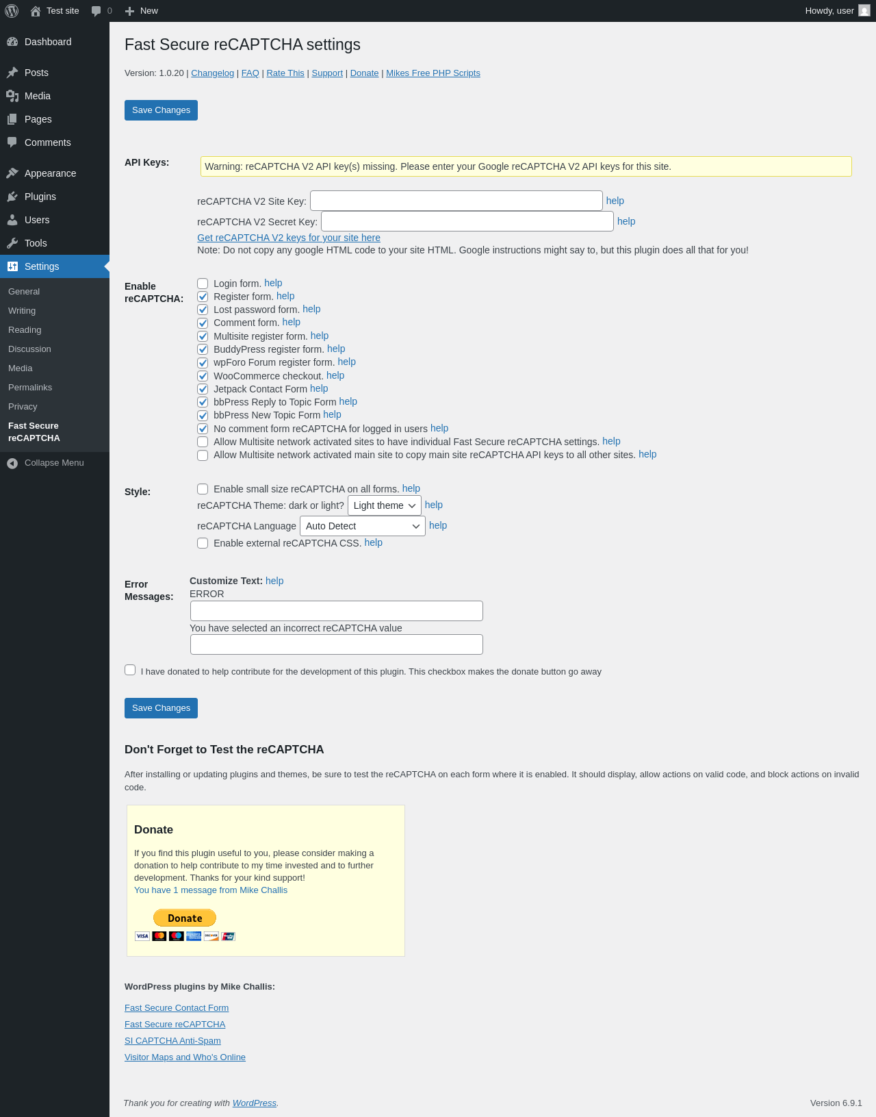 Does Fast Secure reCAPTCHA work with WordPress 6.9.1 and PHP 8.1.12? A smoke test was performed on .