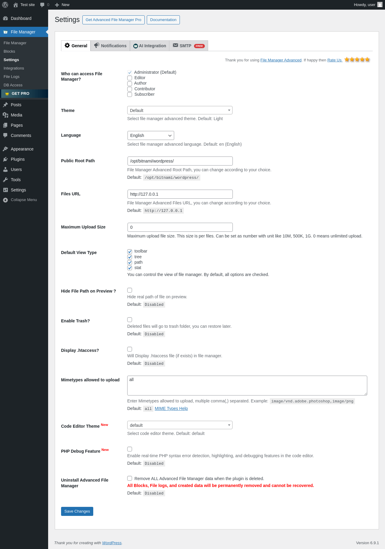 Does File Manager Advanced work with WordPress 6.9.1 and PHP 8.1.12? A smoke test was performed on .