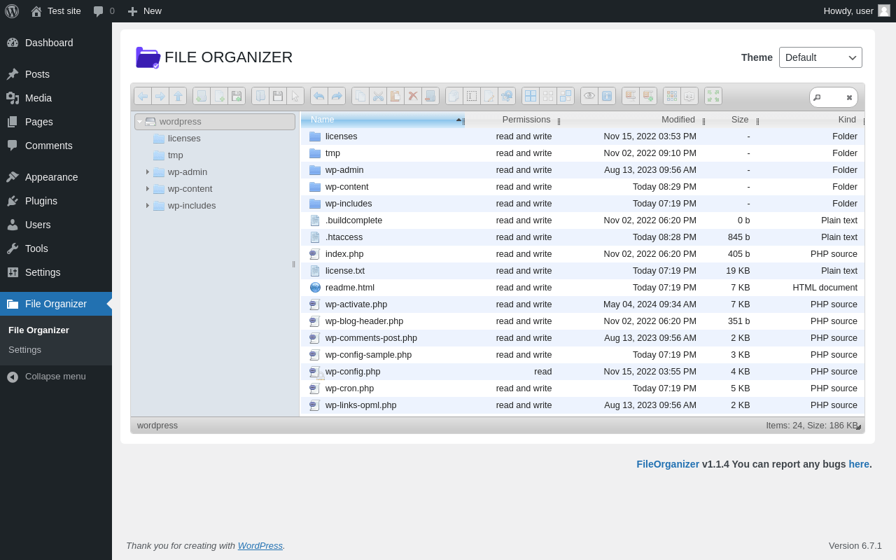 Does FileOrganizer work with WordPress 6.7.1 and PHP 8.1.12? A smoke test was performed on .