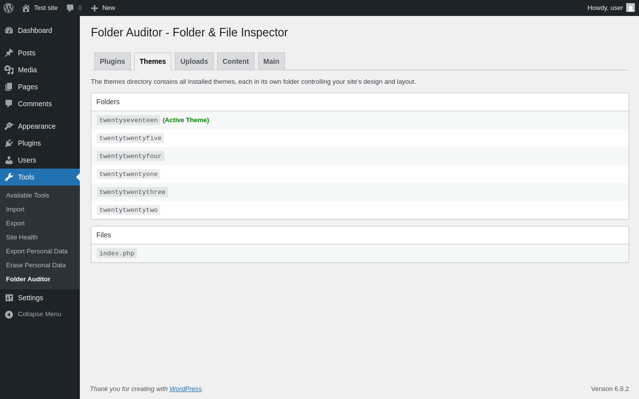 Does "Folder Auditor - Folder & File Inspector" work with WordPress 6.8.2 and PHP 8.1.12? A smoke test was performed on .