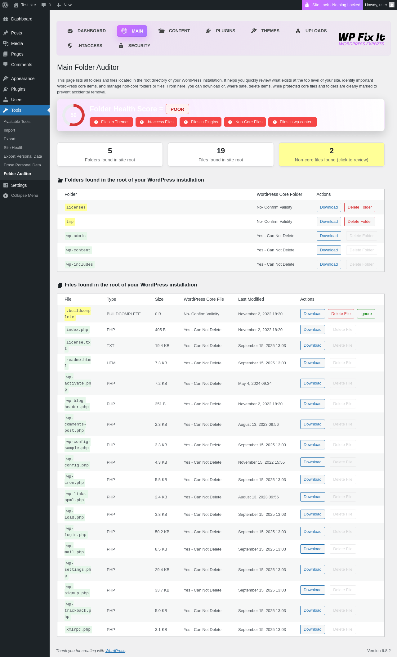 Does Folder Auditor & Site Lock work with WordPress 6.8.2 and PHP 8.1.12? A smoke test was performed on .